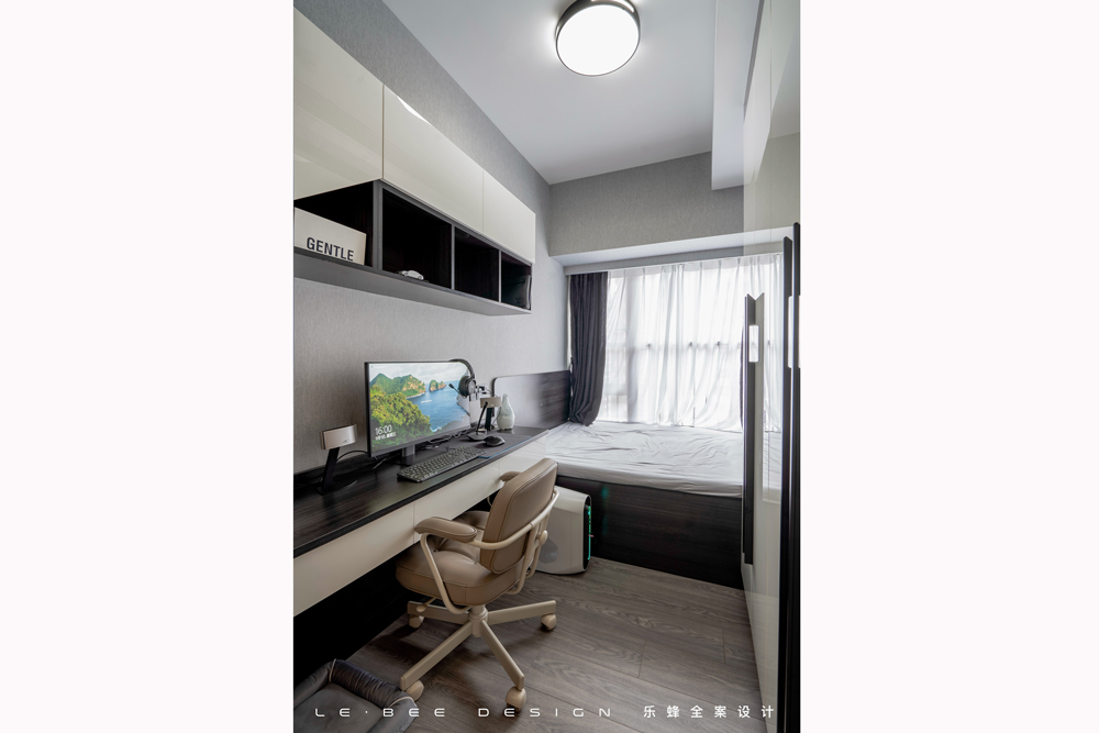 多功能房在滿足日常儲物和客人留宿的同時,還作為屋主臨時辦公的空間,偶爾還能在這里看書或者放松身心打幾局游戲也十分舒適。