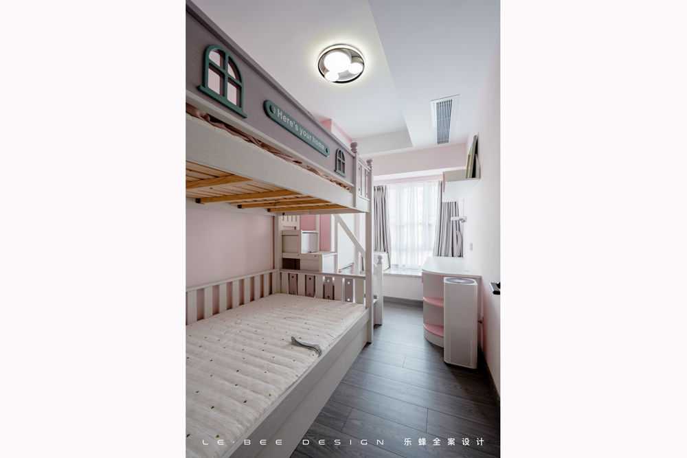 兒童房是小女孩的專屬空間,誰說上下床就不能有藝術感,在滿足日常睡眠的同時,小樓梯還能兼具儲物的功能,旁邊定制的衣柜能養成孩子良好的收納習慣。