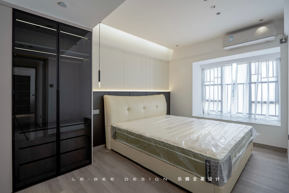 次臥沒有繁復(fù)的裝飾,簡簡單單滿足收納和睡眠的需求即可。