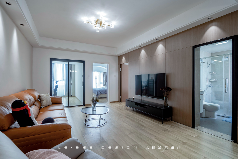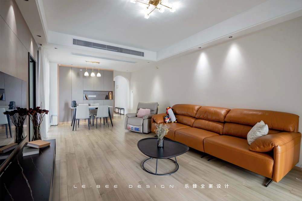 客餐廳地板的鋪貼增加了設計感,在一般不鋪設地暖的南方地區,相比于地磚,木地板會沒那么冰涼,特別是冬天的季節,可以光腳在表面走動。