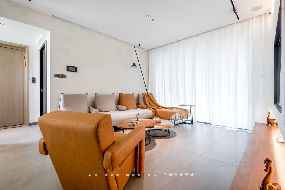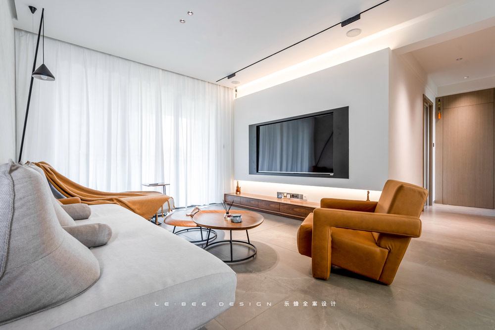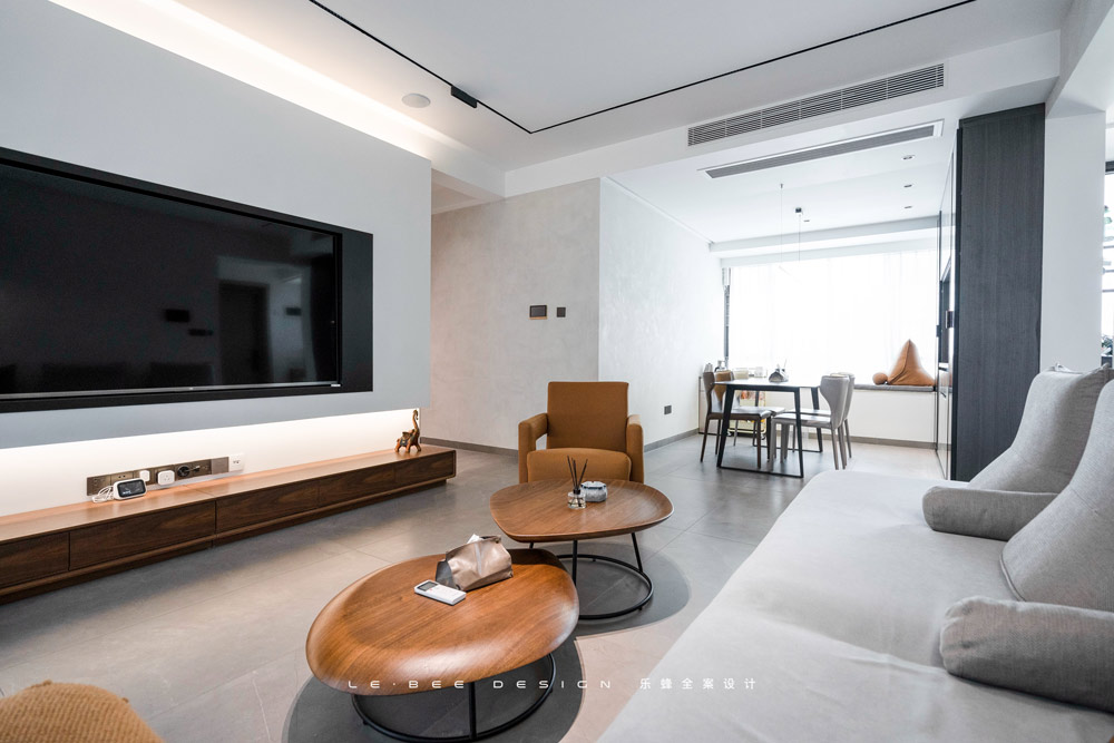 整體簡約不代表變簡單的布置,很多綜合因素都要考慮進來,比如我們在吊頂中暗藏了線組,將音響暗藏到吊頂里面,既能保持背景墻的簡潔還能給客廳帶來良好的試聽氛圍。