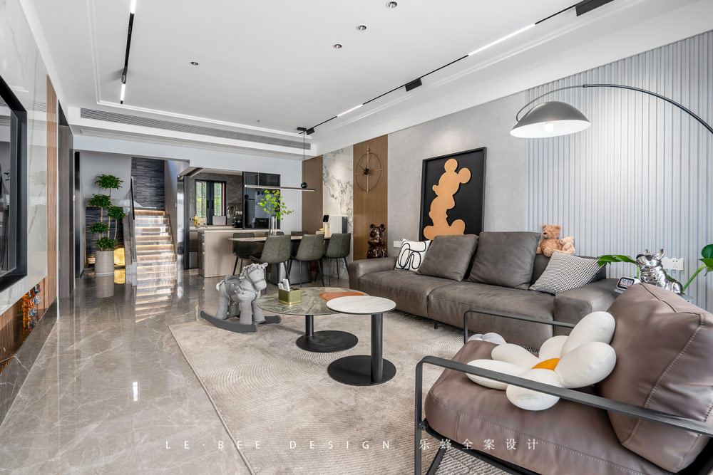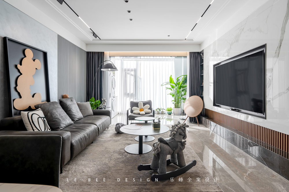 家的設計中,屋主武先生對軟裝細節的重要性了然于心,暴力熊、搖搖馬、迪士尼卡通掛畫的等悉數登場,仿佛成為家庭成員中的一份子,為整個空間的軟裝增添了不少生活氣息。