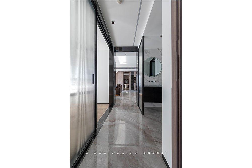 書房不屬于私人區(qū)域,因此在隱私方面沒有很高的要求,書房隔斷選用長(zhǎng)虹玻璃推拉門,做到了透光和空間隔斷兼?zhèn)洌评T選用上滑軌,減少了地面清潔打掃的壓力,也保證了目之所及之處的整潔如一。
