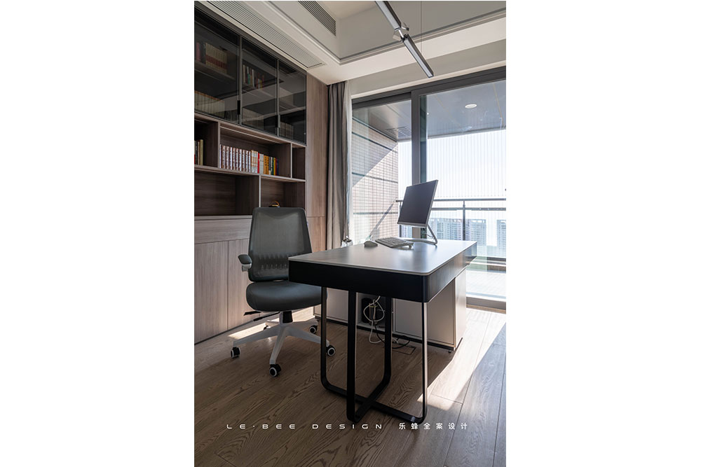 書房外是陽(yáng)臺(tái),落地窗使自然光毫無(wú)阻礙地注入,為工作和學(xué)習(xí)提供了不二的處所。