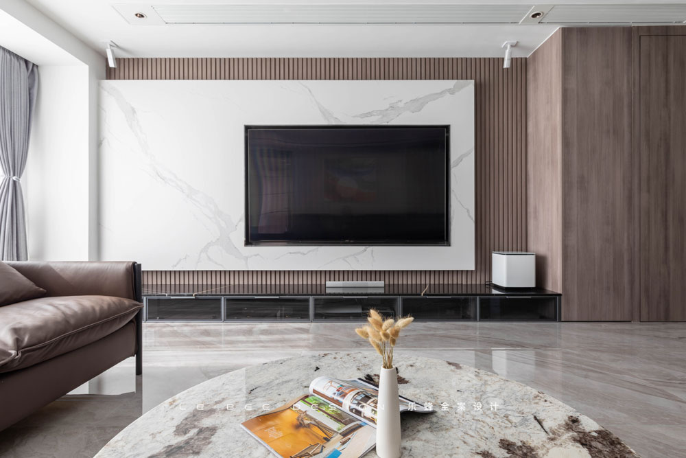 背景墻選用木格柵和大理石面板,精細(xì)計(jì)算的比例搭配,絕對(duì)舒適的視覺展現(xiàn)。