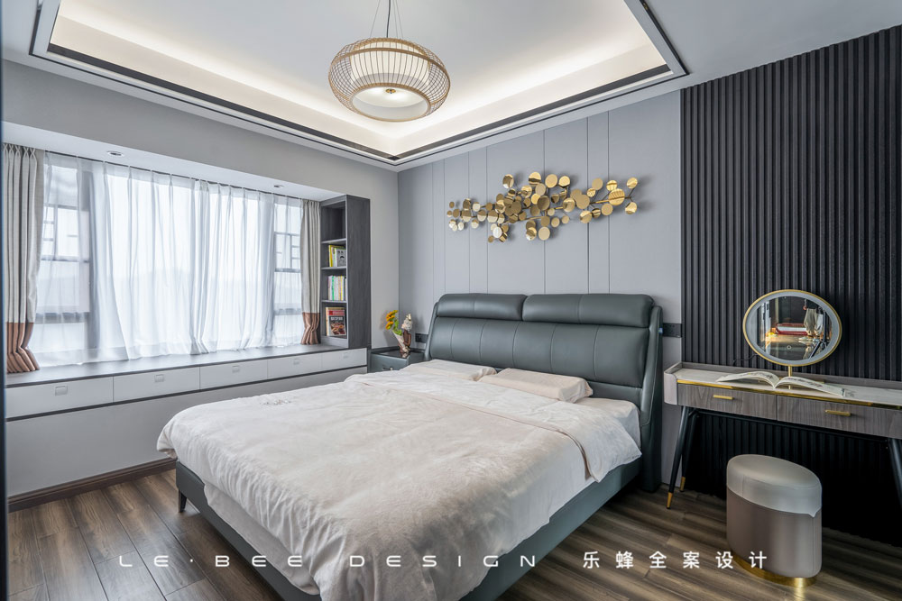 主臥相比起公共空間,多了點現代風格,為空間增添年輕氣息。
