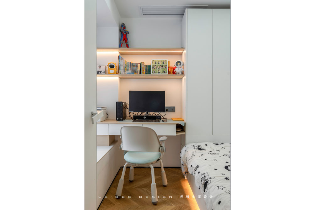 榻榻米是空間利用最優(yōu)化的選擇,純白加原木,將簡(jiǎn)單做到最高級(jí)。弧形吊頂減少低層高帶來的壓抑。置物架式的書架設(shè)計(jì),面板下方嵌入燈帶,任何一個(gè)小設(shè)計(jì)都值得被重視。