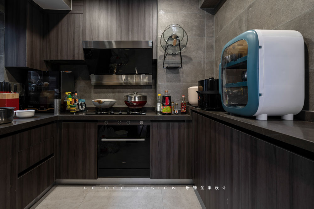 廚房采用U字型櫥柜設計,充分利用空間,高低臺的設置符合人體工程學,對下廚者的體貼關懷就在這十厘米之中。