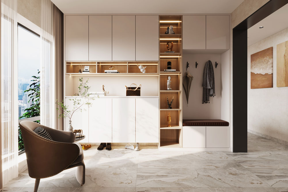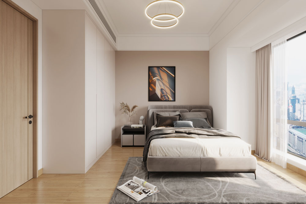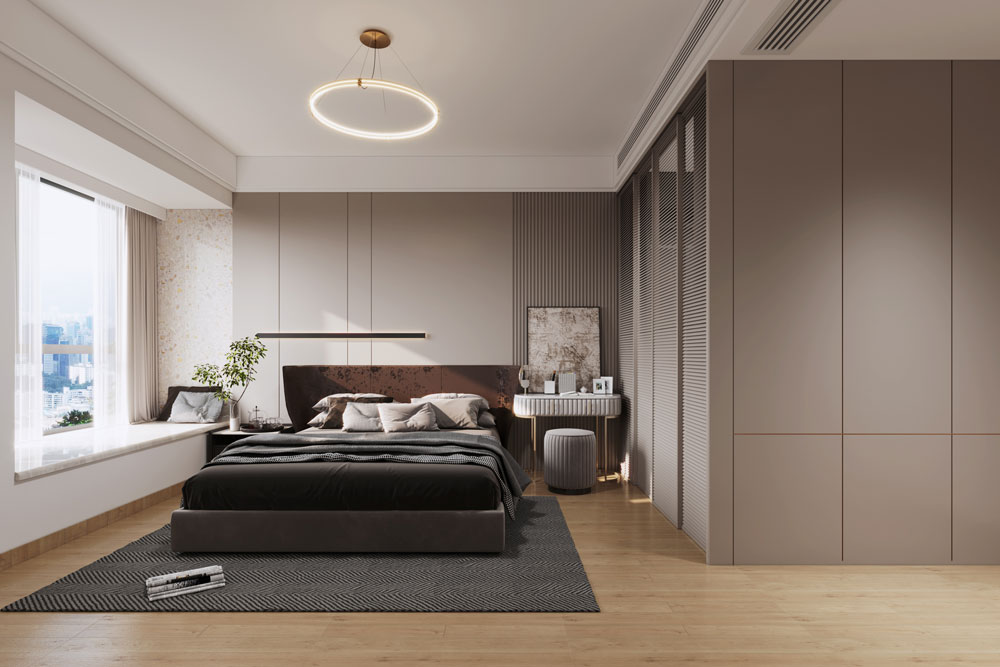 本案是華府國際一套案例,整體空間以現代優雅為基礎,運用新的現代主義設計手法,巧妙地將空間、文化與生活藝術相結合,營造出一個現代時尚舒適的居住空間。