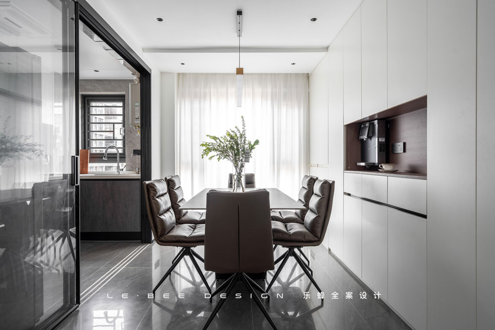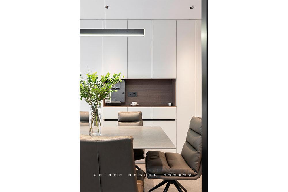 柜體取代墻面,將水吧內嵌其中,功能和儲物自然融合,最大程度縮短飲水動線。