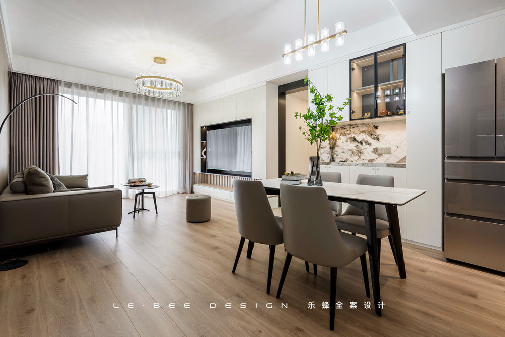 簡單填充功能便丟失了家的藝術(shù),餐廳向來和客廳是相輔相成的存在。在格局上,一面餐邊柜加餐桌,整個餐廳顯得豐富又自在。足夠的空間設(shè)計回字型動線,更適合活潑的孩子們四處走動。