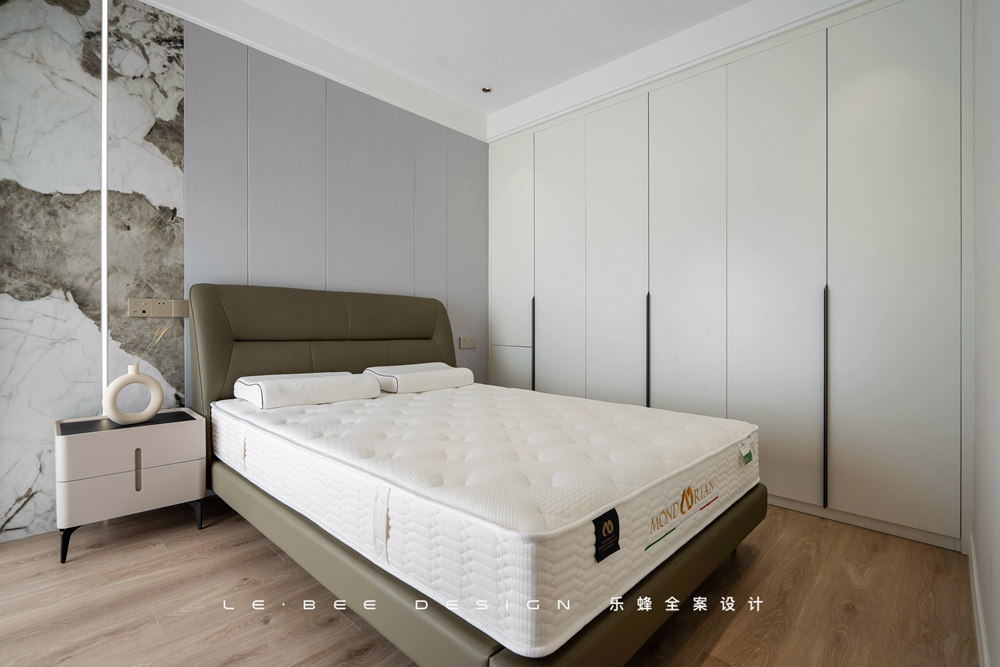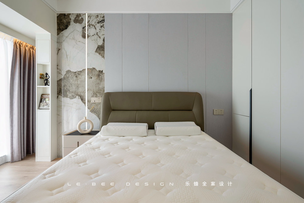 明亮的基調(diào)被貫穿始終,主臥選擇大面積淺色,搭配深色軟裝,格調(diào)和品味沒有公式,每一刻的靈感都能體現(xiàn)得淋漓盡致。