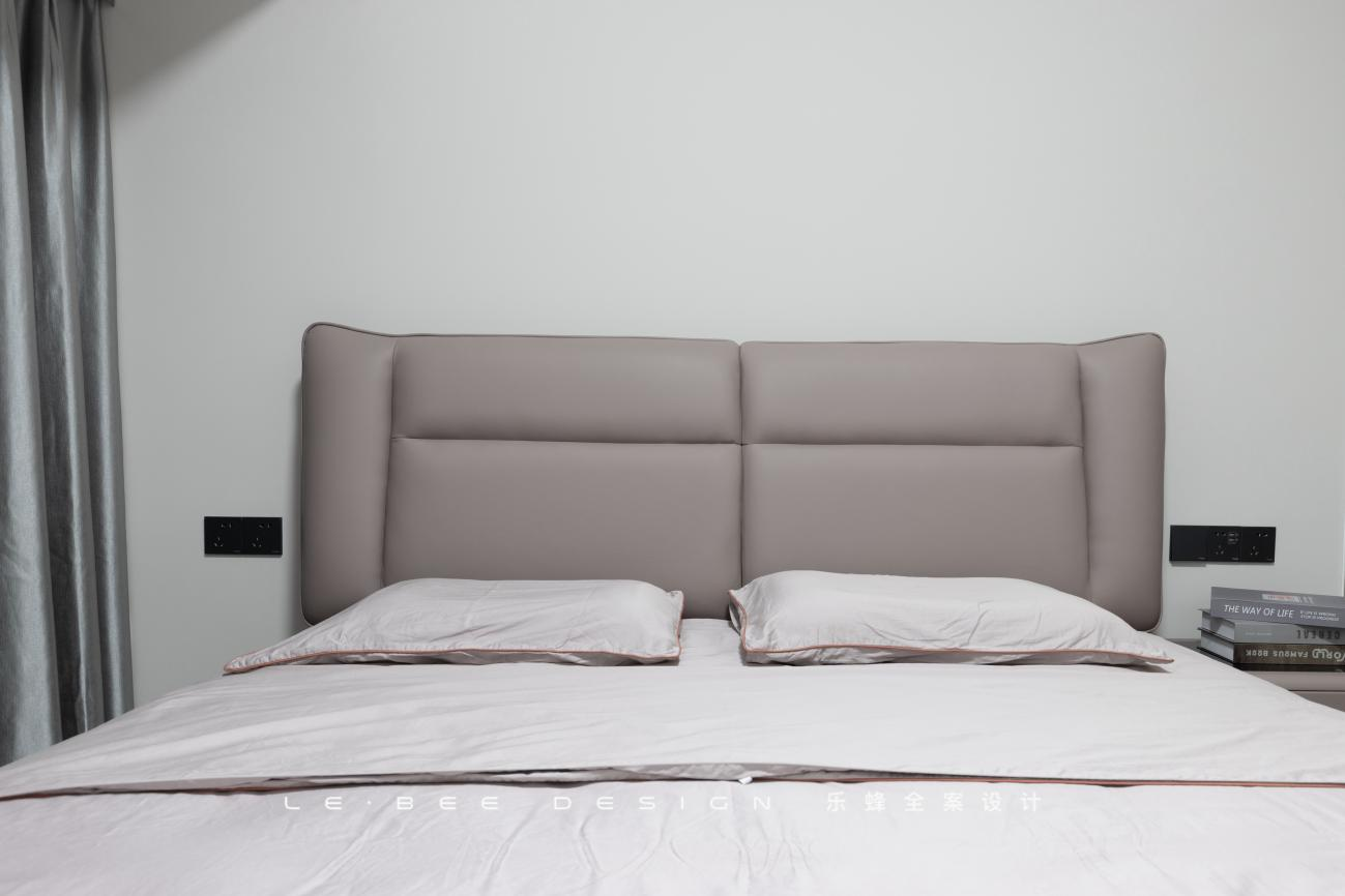 灰粉中和了粉的稚嫩,更加中性也更加柔和。硬包材質床頭,睡前閱讀的最好區域選擇。