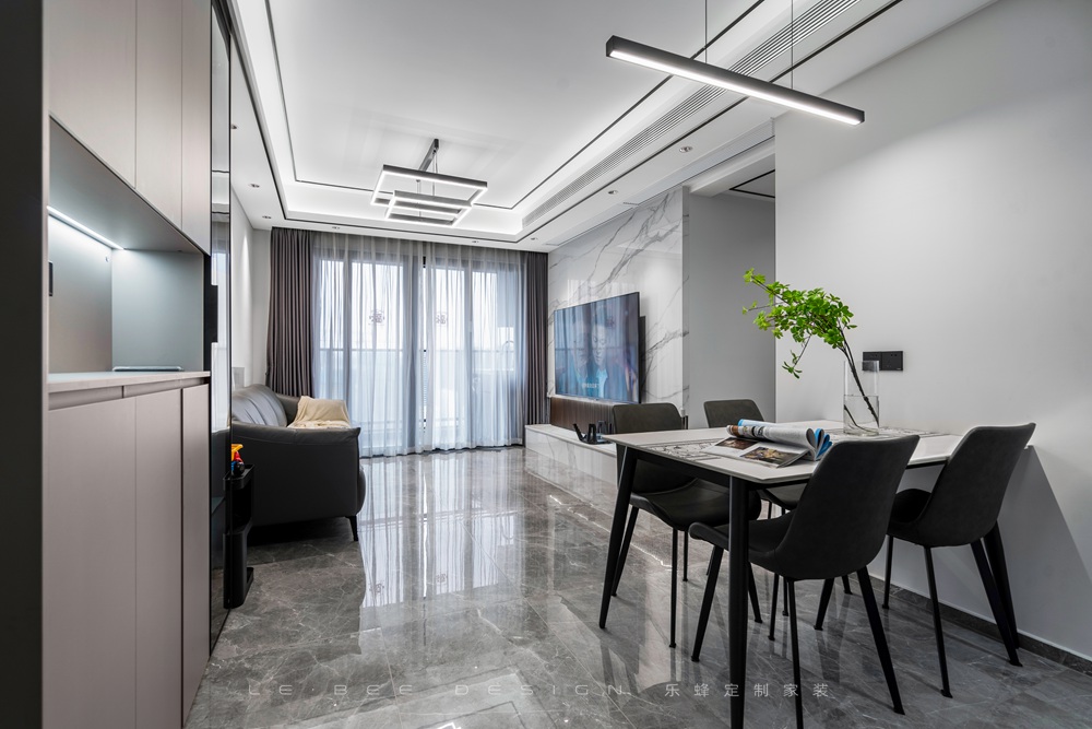 堅持成就一切。本案業主和我們經過長時間的接觸,在這段時間里,業主漸漸對我們的品質和態度有了非常深刻的認知,對我們的設計和工藝和非常滿意,得到認可之后,愉快地和我們簽訂了合約。這個家常住人口三個人,一對夫妻和一個孩子,業主希望可以保留三個居住的房間,能夠容納客人和偶爾過來的老人居住。在設計和風格上,業主偏愛簡約的配色和風格,喜歡利落干凈的線條,也喜歡明亮的空間效果。除此之外,希望我們能夠設計充足的收納滿足家人的收納需求。經過設計和摸索,我們為業主打造了一套兼具個性和簡約的方案,最后的落地效果也取得了業主的好評。