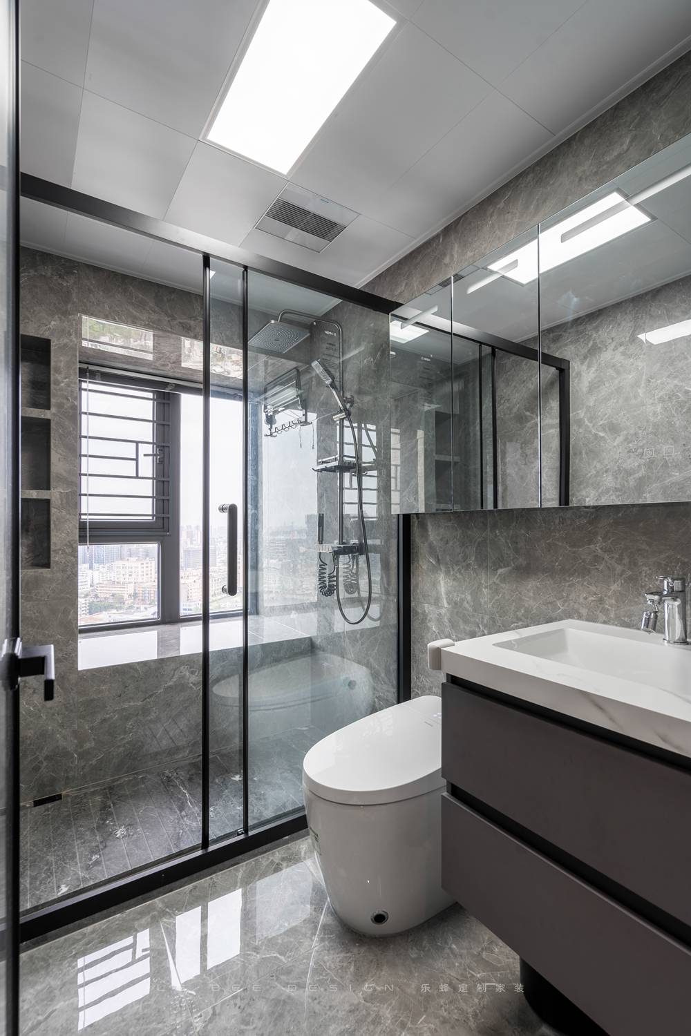 衛生間空間充裕設計為干濕分離,鏡面柜是解決衛生間收納的最好的辦法之一。飄窗帶來了優越的采光和充足的置物空間。為了實現空間利用最大化,我們在淋浴區墻面設計了壁龕,方便淋浴時物品的取放。