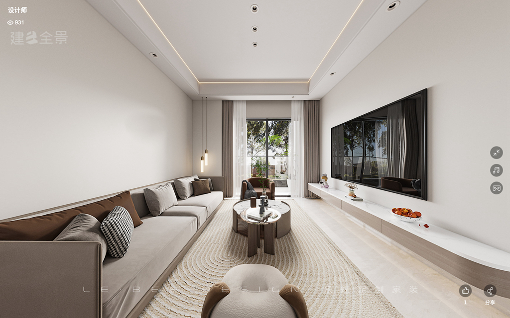 客廳是一個家庭最重要、最核心的空間,因此跟隨簡潔的主題進行設計。灰色和棕色的素色相搭配讓整體更加協調。邊頂、射燈和線燈的組合為客廳增添了一些特色。電視和沙發背景都非常簡單,以凸顯整個空間的簡約風格。