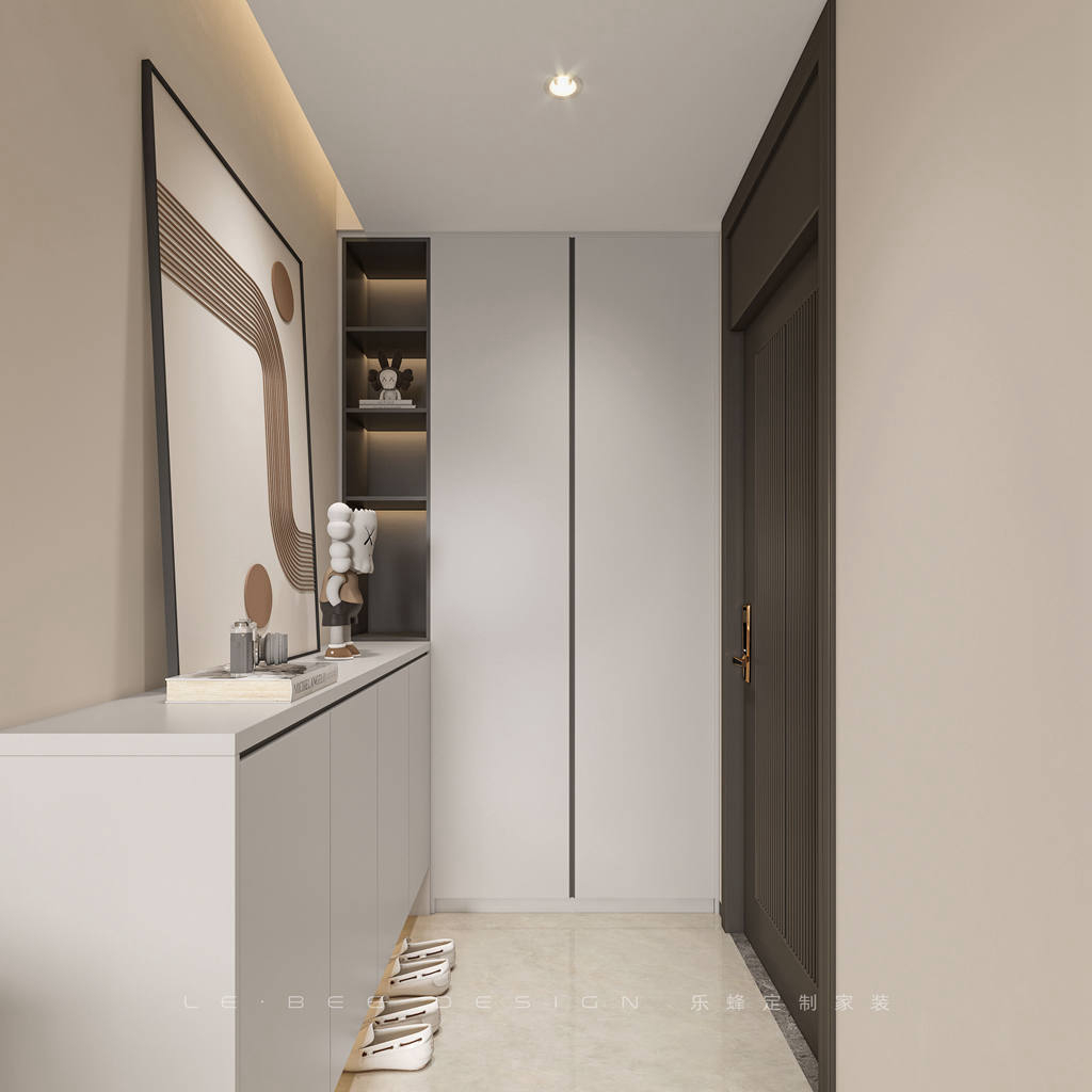 此外,收納鞋柜和衣帽柜也被設計師安排在這里,讓回家的人可以放下包袋、濕漉漉的外套,留下心情的沉淀。