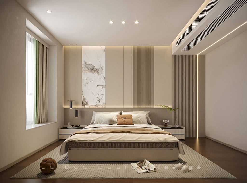 分別設計了一個獨立的衣帽間和書房,讓主臥的功能更加完善和齊全。臥室的布置呈現出溫馨自然的感覺,業主可以更加隨心地享受生活。