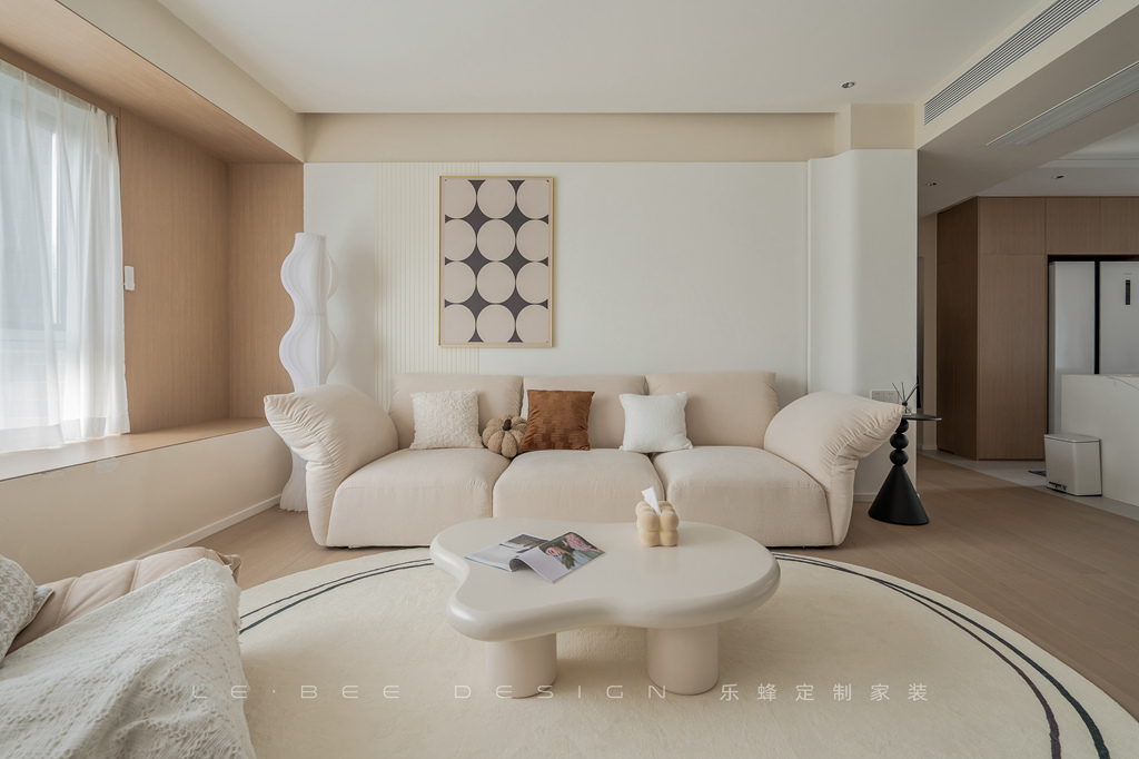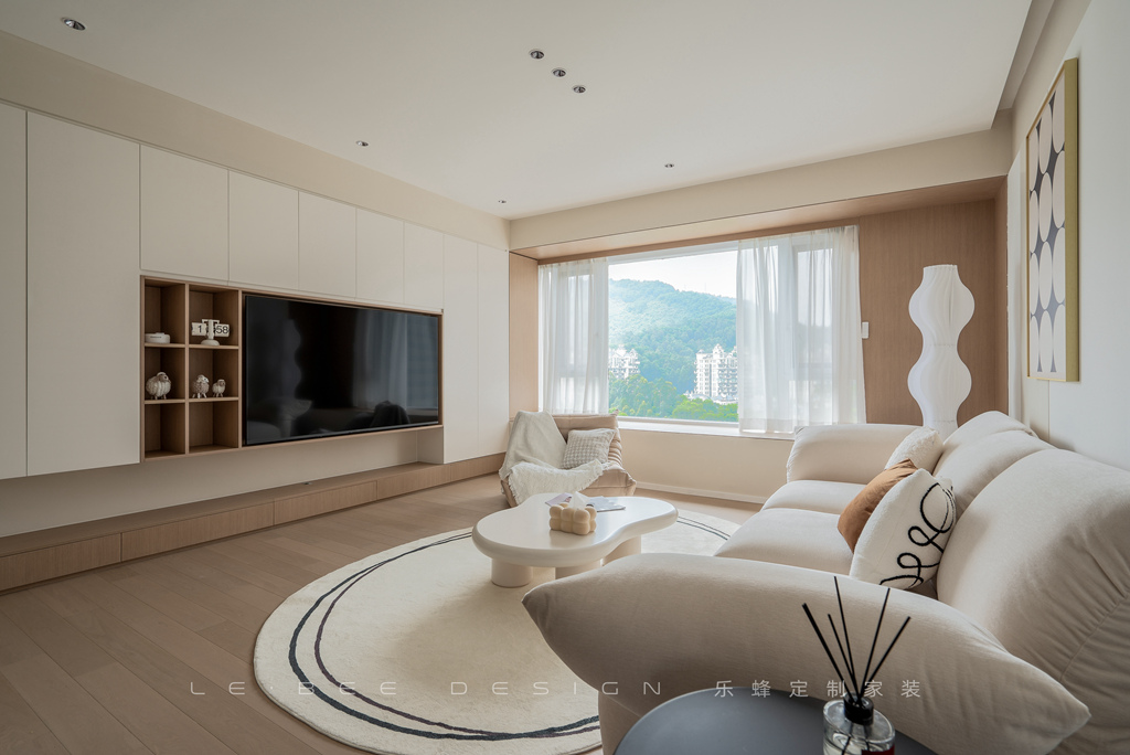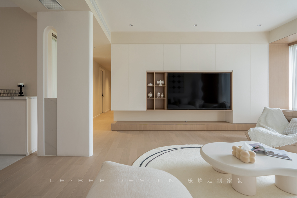 電視柜設(shè)計(jì)巧妙還原,充滿了收納的便利性。電視嵌入在柜子中,周?chē)难b飾隔板和原木電視地柜相得益彰,呈現(xiàn)出一種簡(jiǎn)約而又不失品質(zhì)的感覺(jué)。客廳就像一片濃濃的奶油海洋,散發(fā)著慵懶而溫馨的氣息。沒(méi)有主燈的設(shè)計(jì)讓原木底板更加突出,營(yíng)造出一種自然而舒適的氛圍。飄窗與夢(mèng)幻窗簾的融合,讓每一次休憩都成為一場(chǎng)輕松的享受。