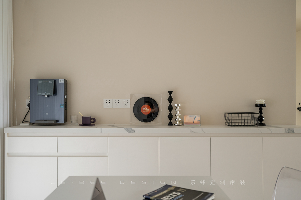 書(shū)房簡(jiǎn)約而又精致,白色的書(shū)桌設(shè)計(jì)簡(jiǎn)單大方,后兩邊則是結(jié)合了開(kāi)放和封閉式書(shū)架,不僅能夠存放書(shū)籍,還增添了裝飾元素。在書(shū)籍放好后,柜門(mén)可以輕松關(guān)閉,不易積灰,簡(jiǎn)約而干凈。特別的推拉門(mén)設(shè)計(jì)讓空間有無(wú)限可能,將書(shū)房與生活陽(yáng)臺(tái)連接在一起,既神秘又具有隱私感。