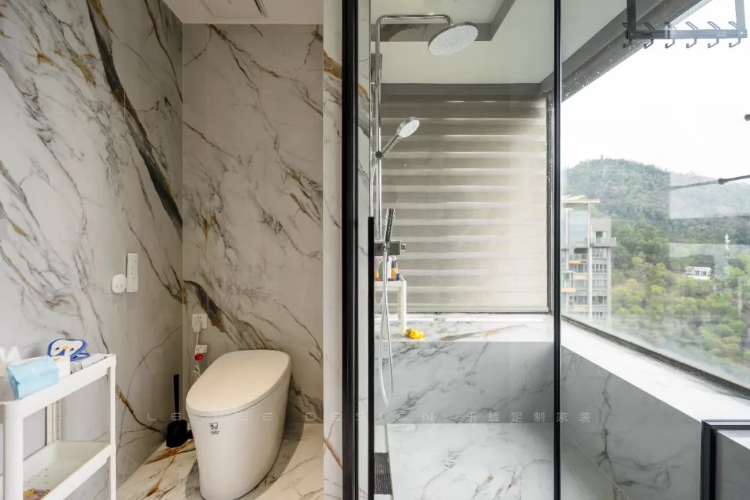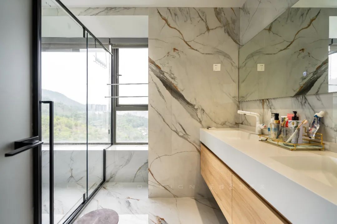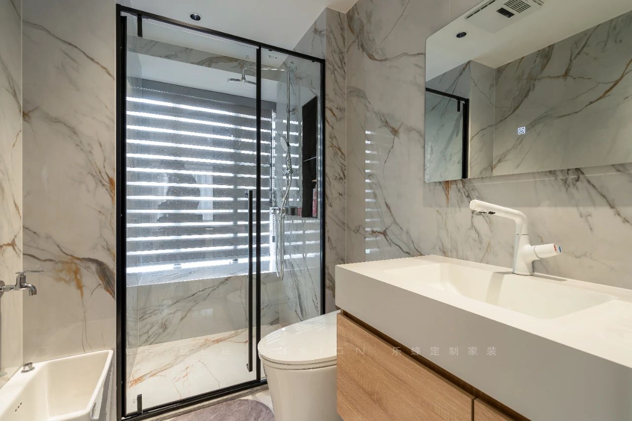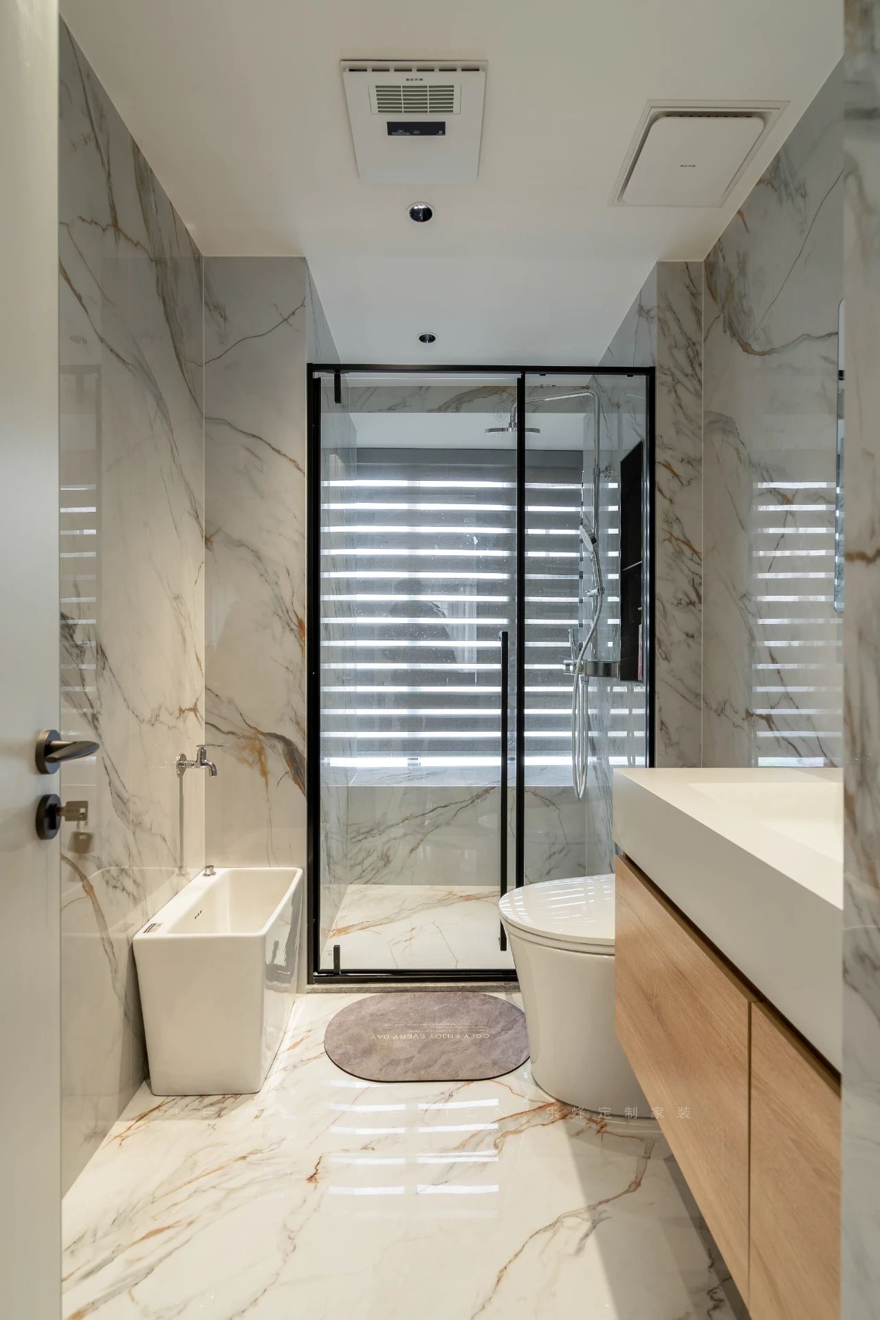 公衛(wèi)以整體原木風(fēng)的設(shè)計為主題,強調(diào)自然與舒適的氛圍。干濕分離的設(shè)計提升了空間的實用性,使功能區(qū)域更加清晰。墻面采用大理石巖板裝飾,不僅賦予了空間高雅的質(zhì)感,還增添了豪華感和品味。設(shè)計上注重了細節(jié)和材質(zhì)的選擇,為衛(wèi)生間營造出溫暖、典雅的氛圍,讓人們在其中感受到舒適與放松。
