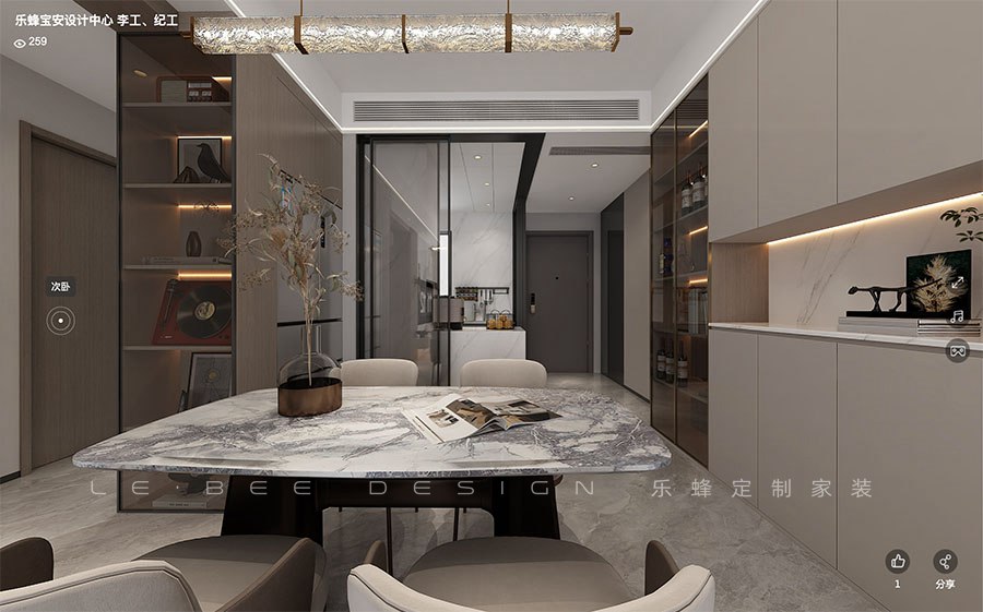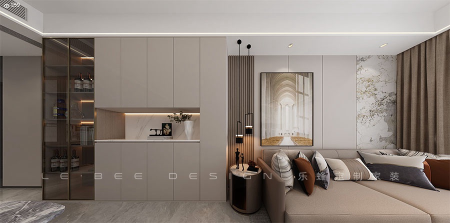 溫馨的家裝從不需要,繁雜與復雜的裝潢,簡約中也不僅僅只有平庸。化繁為簡便是最好的詮釋,本案整體布局低調不張揚,卻不缺少奢華的韻味,這一套現代極簡風,彰顯出空間開闊大氣的氛圍,提升了空間的美感和層次,從而使人在精神上感覺到一種舒緩、放松的生活狀態。