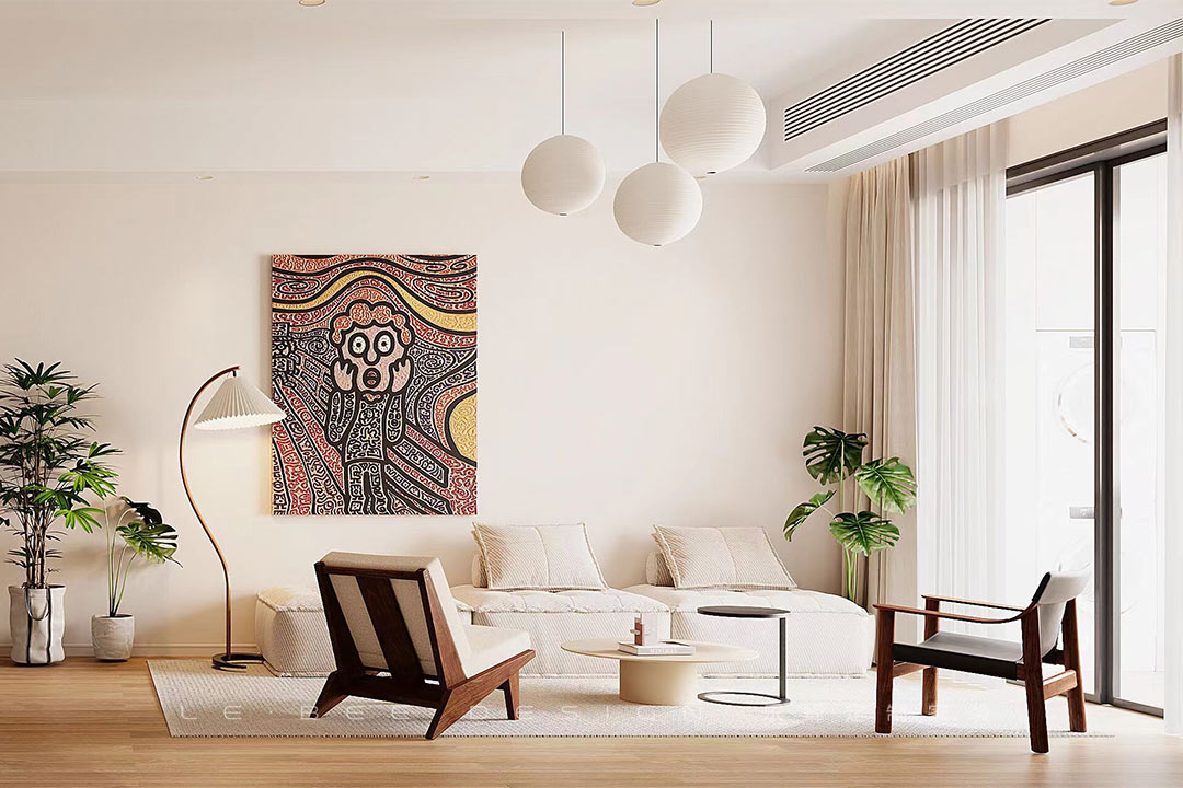 現(xiàn)代風(fēng)格上加中古元素的話,感覺(jué)會(huì)更簡(jiǎn)約干凈。簡(jiǎn)單的線條延伸空間,中古搭配更顯質(zhì)感,簡(jiǎn)約上更顯格調(diào)。 中古現(xiàn)代風(fēng)很好的中和了傳統(tǒng)自然和現(xiàn)代工業(yè)之間的關(guān)系,材質(zhì)上通常會(huì)選擇木材、金屬、石材作為硬裝部分。而軟裝則會(huì)用到皮革、毛絨、藤編、麻布這些自然質(zhì)感的材料,相互搭配使用可以很好的呈現(xiàn)中古風(fēng)的氛圍感。 現(xiàn)代風(fēng)格疊加中古元素,淺色空間深色點(diǎn)綴,浩瀚宇宙,繁星點(diǎn)點(diǎn),簡(jiǎn)而不陋,華而不奢。