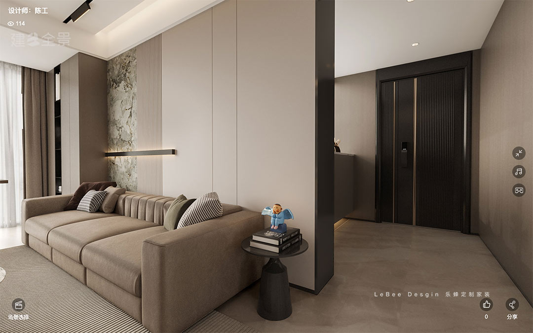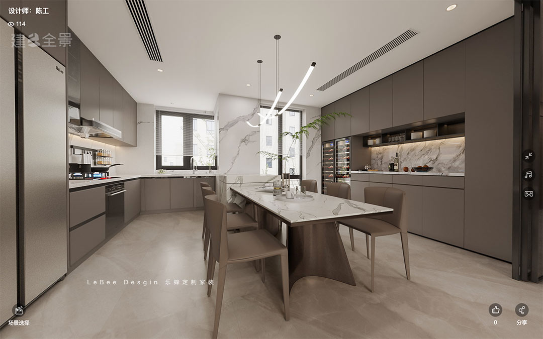 整個空間采用開放式的格局,通過黑白灰關系來講室內的氣質升華,用深色的石材和金屬來進行輔佐,讓空間更加有節奏和干練。開放式的布局讓此處空間擁有了更加高調的格局,游走在室內的除卻一些精美的藝術家具以外,還有各類材質,材質之間的不同質感交相融合,打造了獨屬于此處的豐盈美感,黑白灰三色的融合,恰好足以詮釋空間的優越質感。乍一看,空間的柔和似乎是與生俱來一般,實則在這之中一直蘊藏著設計師的小心機。