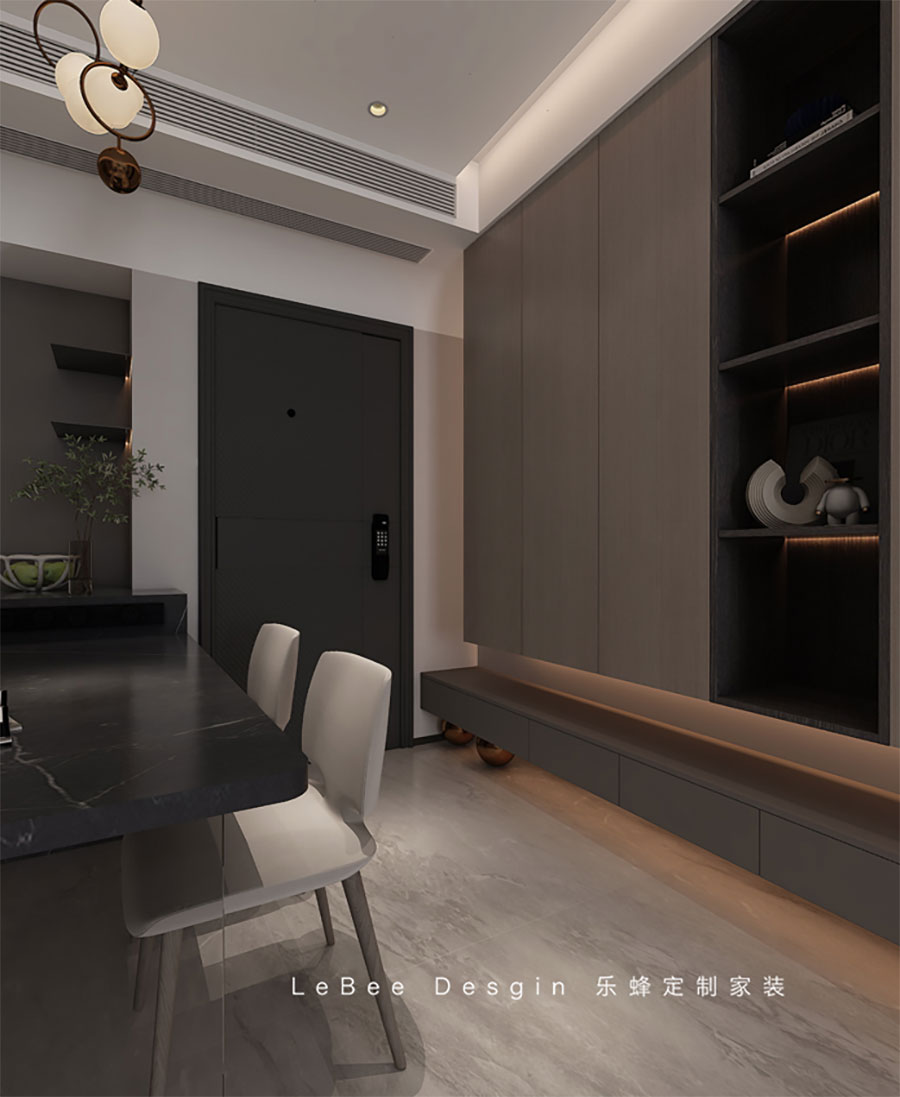 入戶選用灰色室內門,門體與墻面完美融為一體,營造出空間的統一與和諧,讓整體空間更顯得優雅而簡約。