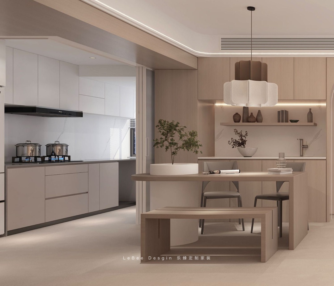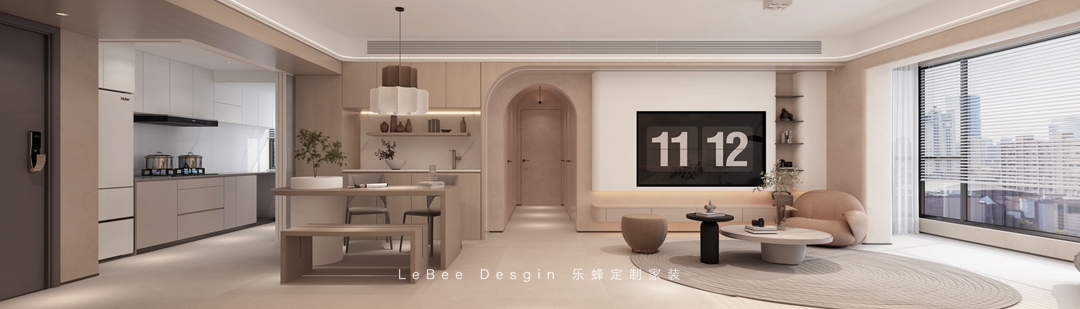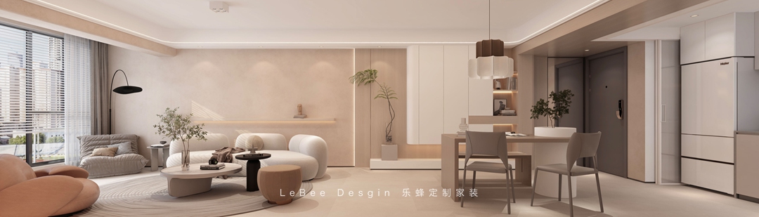 本案例設計風格為詫寂奶油風格,從原先業主一開始喜歡的侘寂風格,慢慢的一起討論演變成了混奶油風的效果,實現了業主的溫馨舒適體驗感。將現代主義和極簡主義進行了融合和運用。將現代性與傳統藝術相結合而創造出一種新的美學風這種風格比較接近自然的本真,以物為形來營造空間,沒有繁瑣復雜的裝飾;使用自然的材料的形狀。在現代設計中體現一種不被打擾的靜謐生活方式
