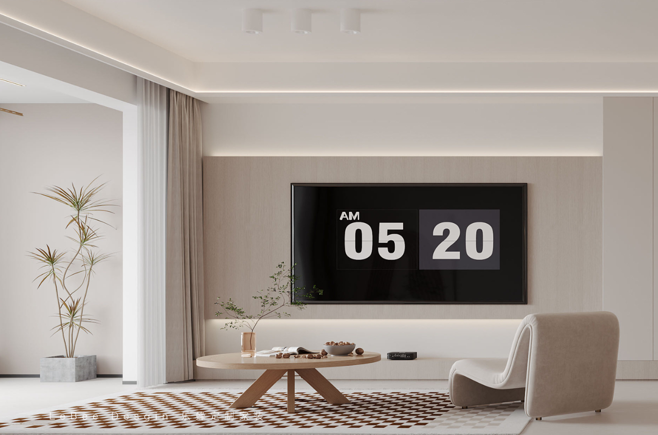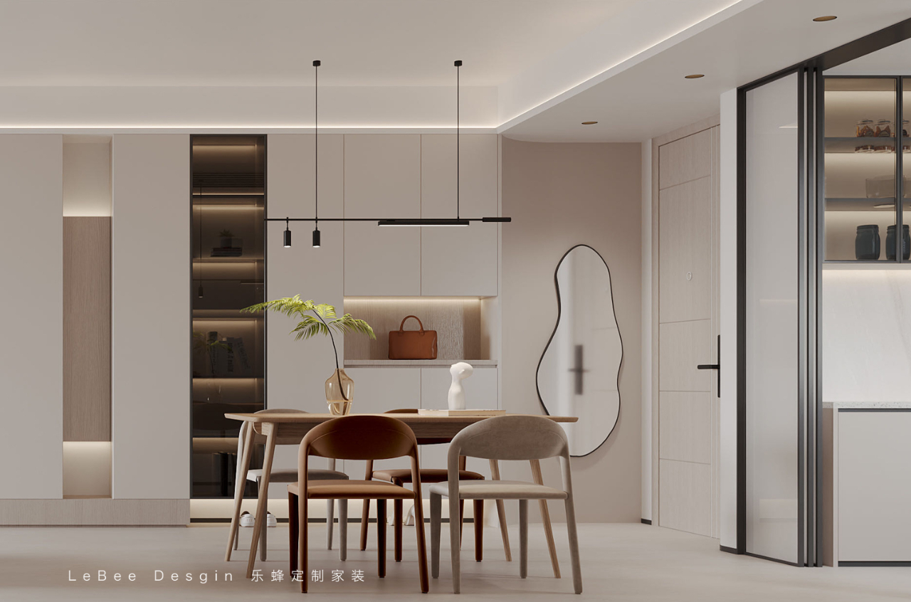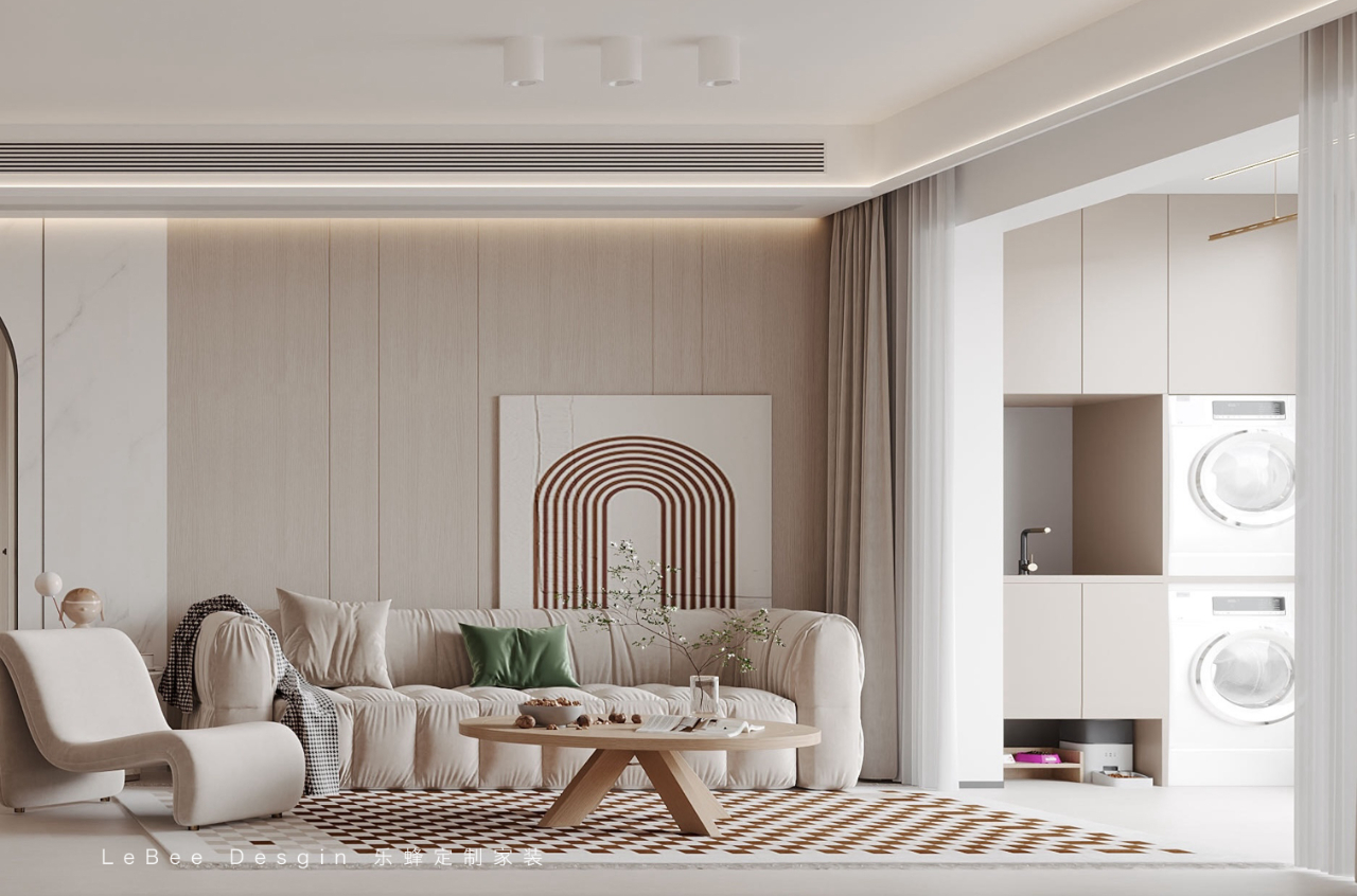這一套我們整體以恬靜溫柔奶油色為主色調,搭配柔和的米色、灰色等,營造出溫馨治愈的氛圍,自帶“溫柔軟糯”的濾鏡,運用大量的弧形元素,優雅的圓拱造型,弱化空間里的尖銳棱角。