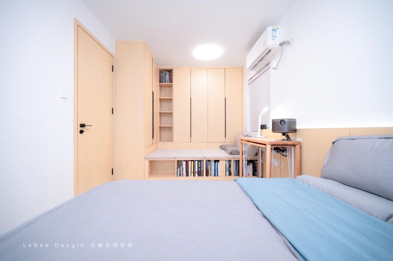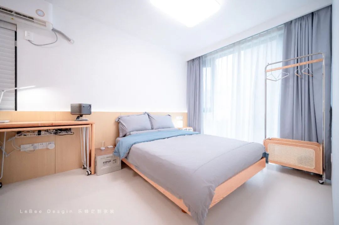 主臥延續了整體風格的設計,一張原木系的床,簡約大氣的同時,又散發著無盡的溫馨感。