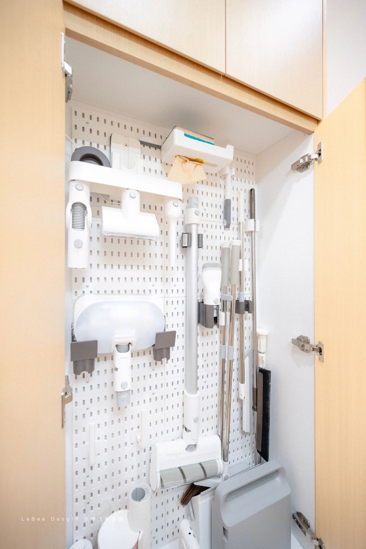 入戶柜特別設計的一個收納區,采用了洞洞板的隔板,真的太實用啦,可以輕松放置一些常用的工具等,讓一切都變得井井有條。