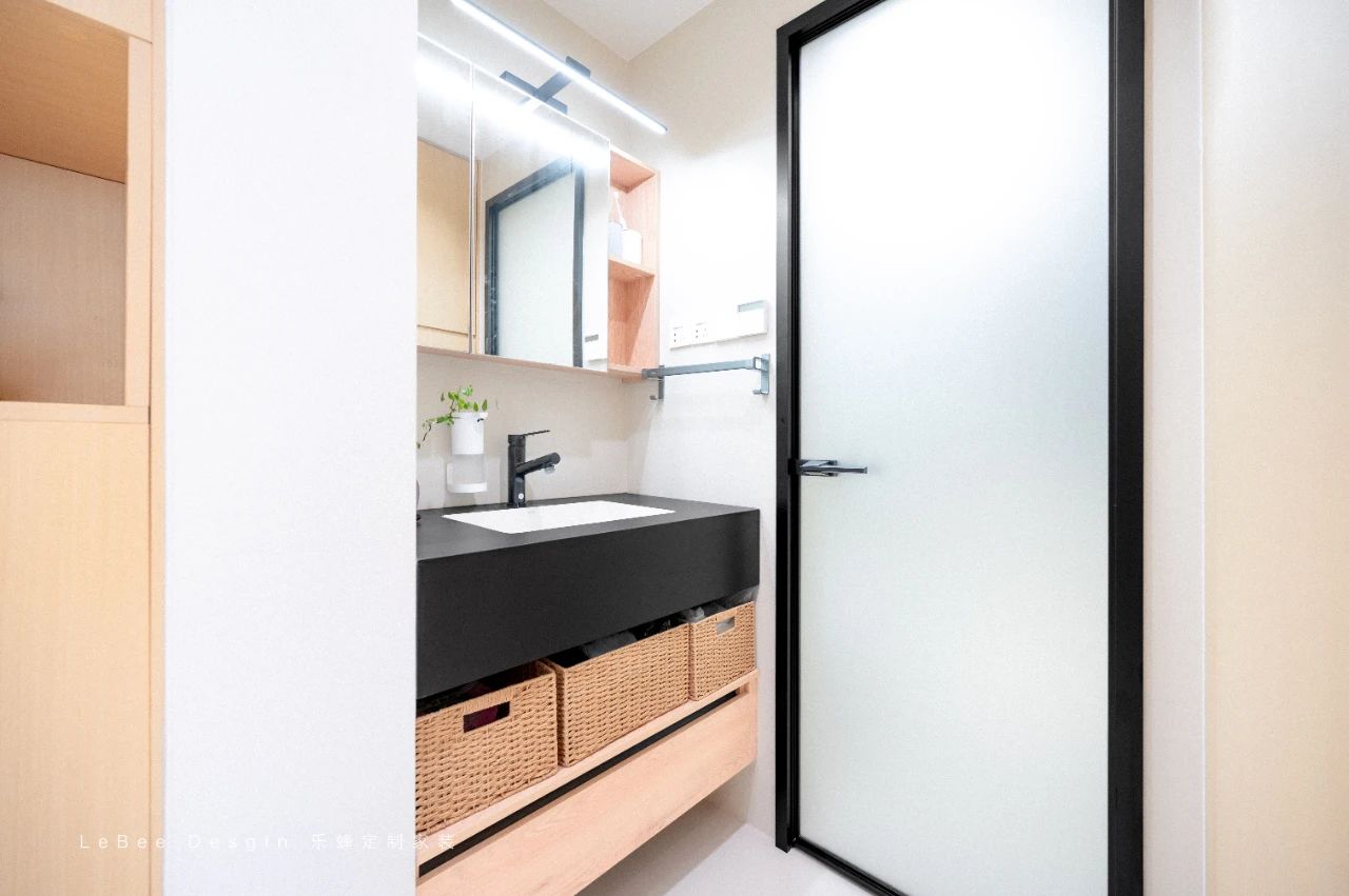 洗手臺的設計更是令人驚艷,黑色大理石那深邃而高貴的質感,與原木抽屜和置物籃所散發出的自然質樸韻味相互交融、相得益彰,猶如一場奢華與質樸的完美邂逅。