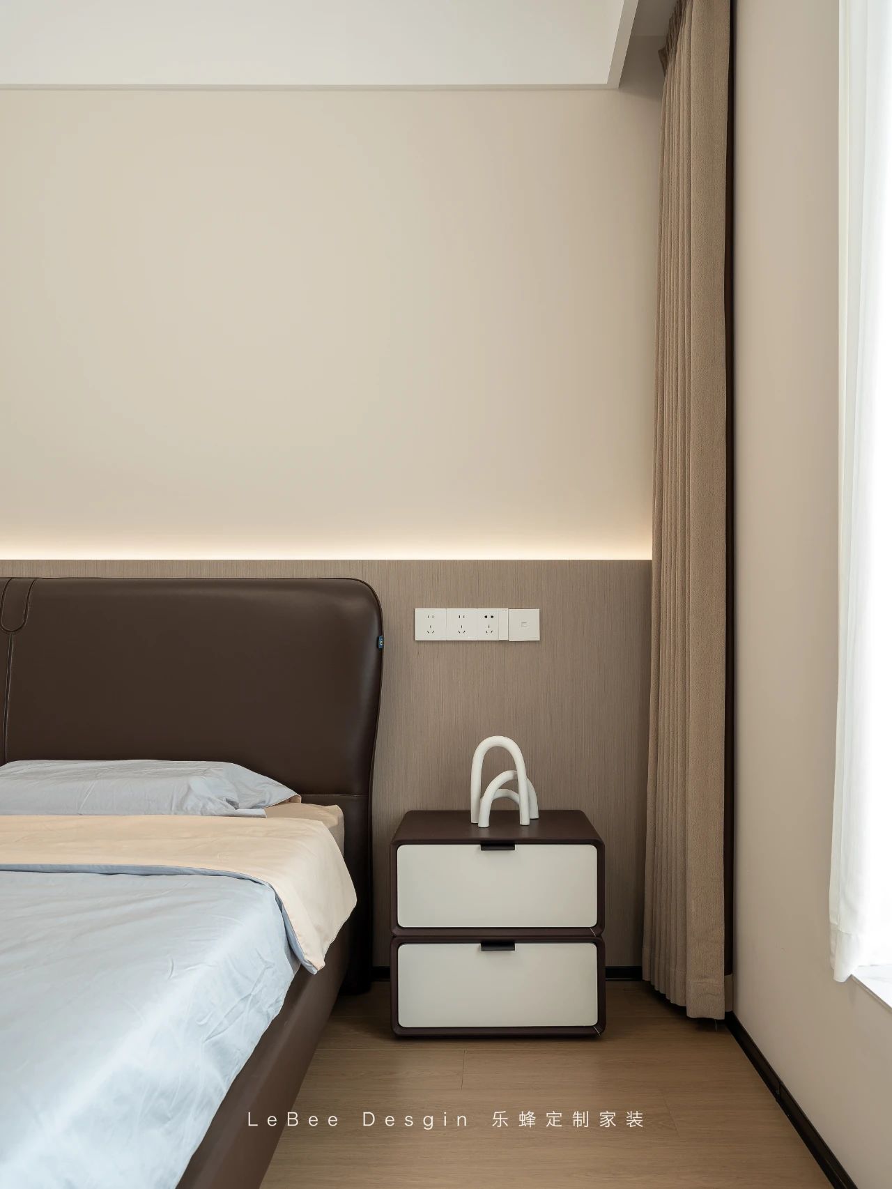 整個房間的墻面通刷奶咖色乳膠漆,這種溫馨的色調猶如午后的陽光,讓人感到無比溫暖和舒適