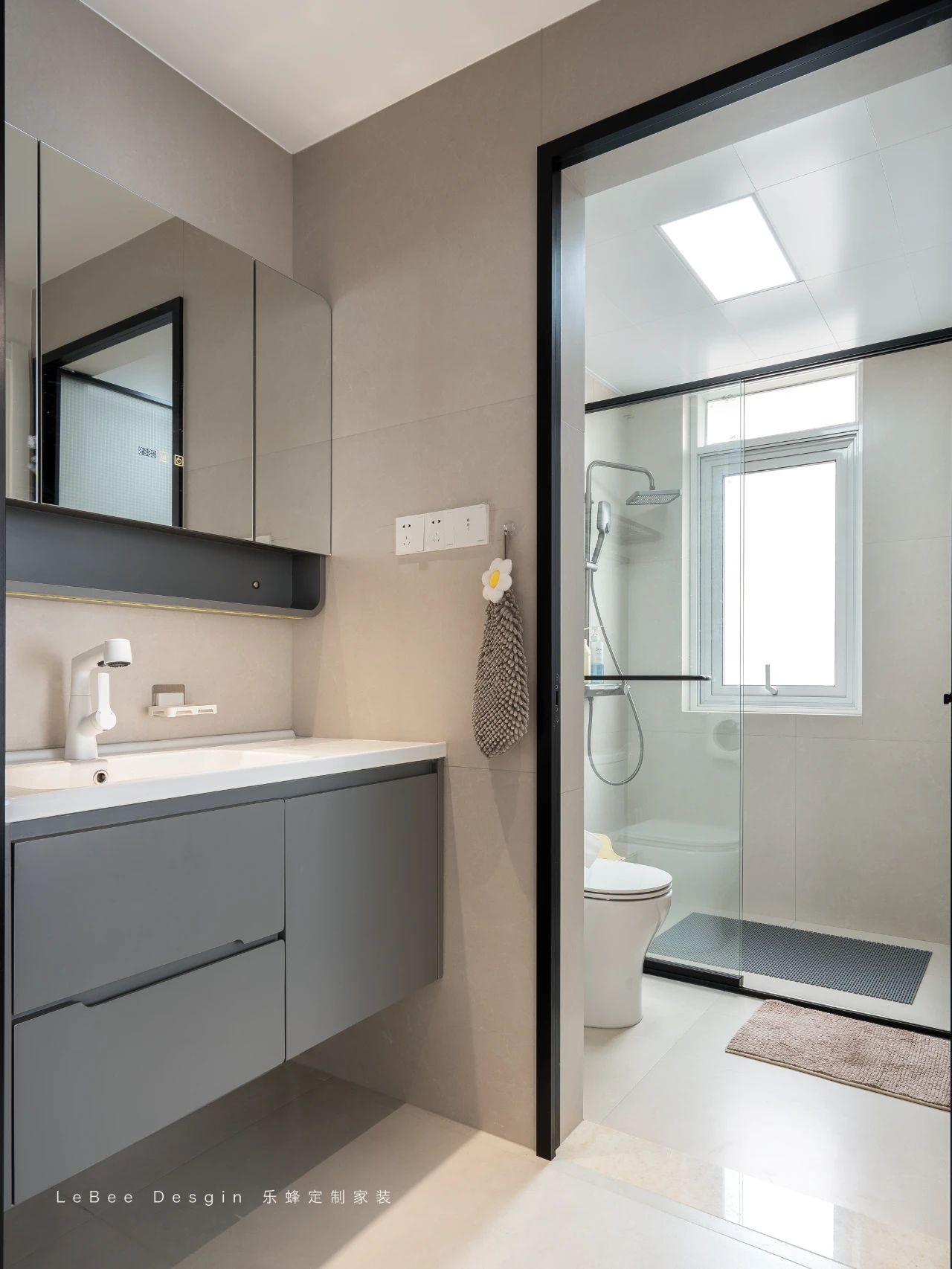 外置洗手盆簡約美觀,方便洗漱。內部濕區布局合理,淋浴和如廁獨立舒適。
