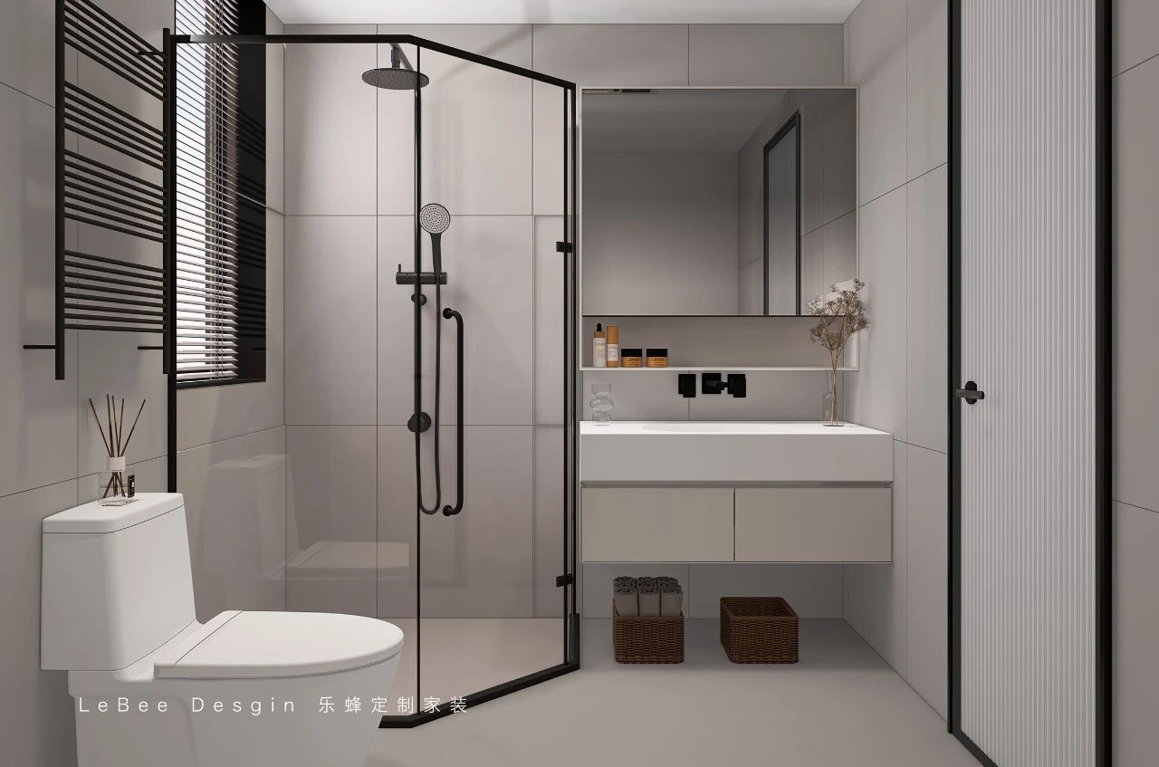 浴室是低調(diào)簡約的風(fēng)格,簡約而又不失質(zhì)感,做干濕分離分割出來淋浴區(qū)跟馬桶區(qū),奶白色浴室柜真的絕絕子,整體布局實用且井然有序~