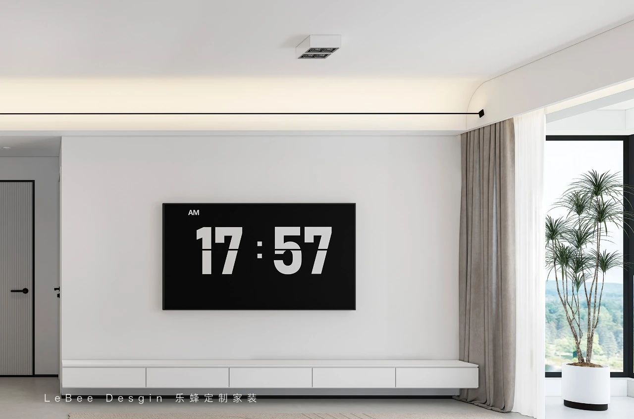 極簡的家,并不是單一的做減法,而是用最簡單純粹的形式,成全家居真正適合的功能。電視背景墻面為白色乳膠漆通刷,地面選擇的是灰色地磚,無主燈設(shè)計 空間更顯通透 營造出極簡氛圍感。