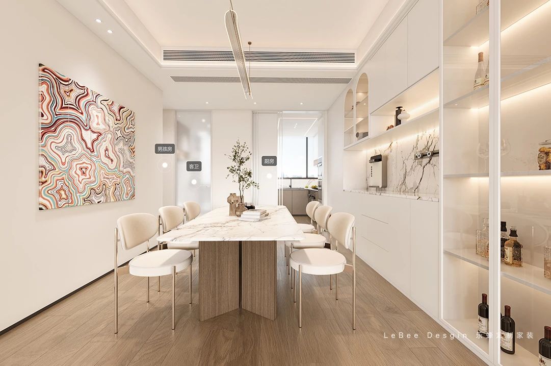 本案的業主是一對90后夫妻,家里有三個小朋友,加上業主有在家辦公的需求,故做了五個房間,業主不僅要求顏值高,同時也希望實用性滿滿,再加上客餐廳一體化這一顯大“神器”,整個空間有200平的既視感,溫馨治愈又高級,一起來看看吧!