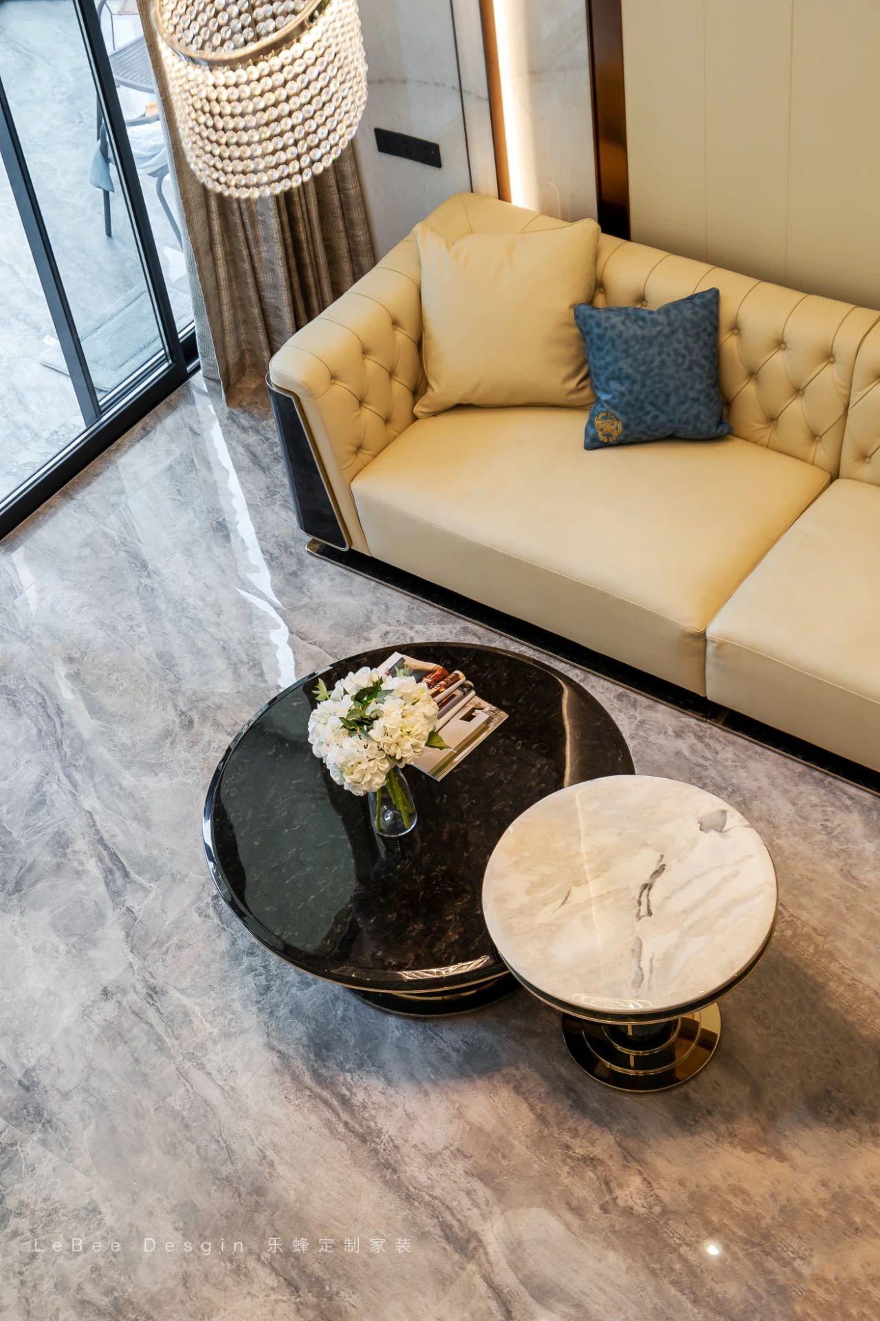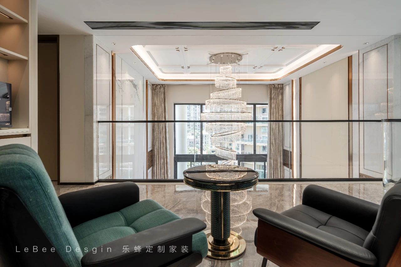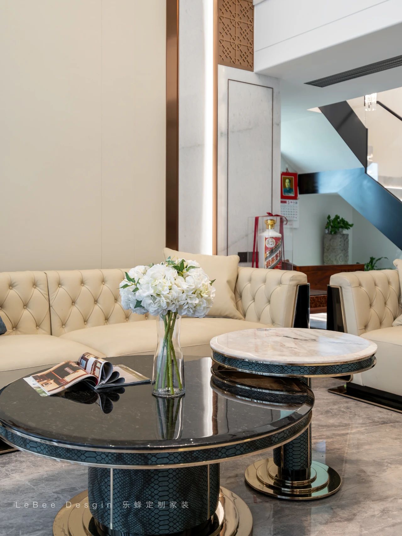 樓梯間通鋪與客餐廳一致的大理石,淺色系的低調(diào)質(zhì)感,搭配連貫地臺(tái)的設(shè)計(jì),有效地延伸了空間視覺(jué),讓每一步都仿佛走在藝術(shù)的長(zhǎng)廊。