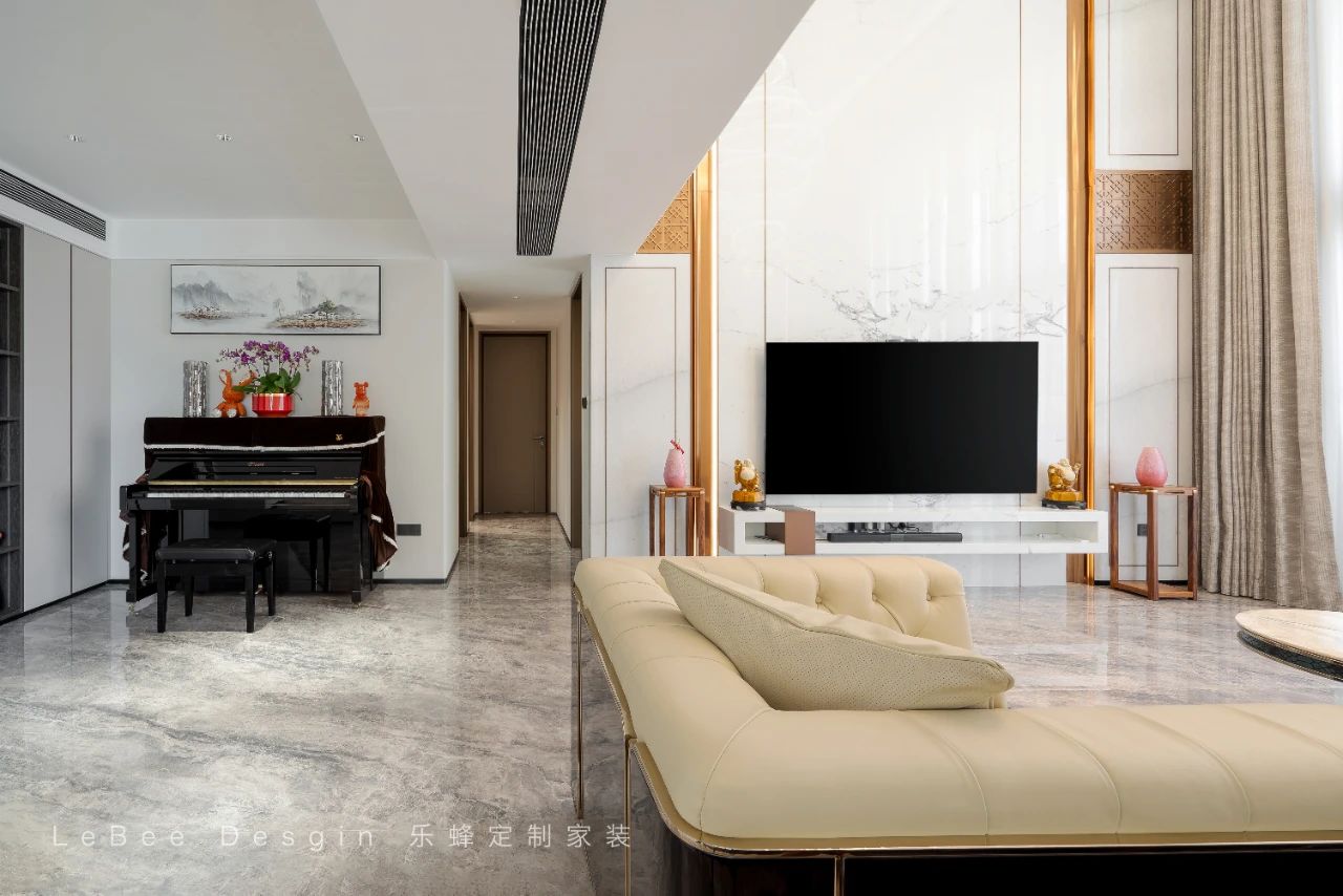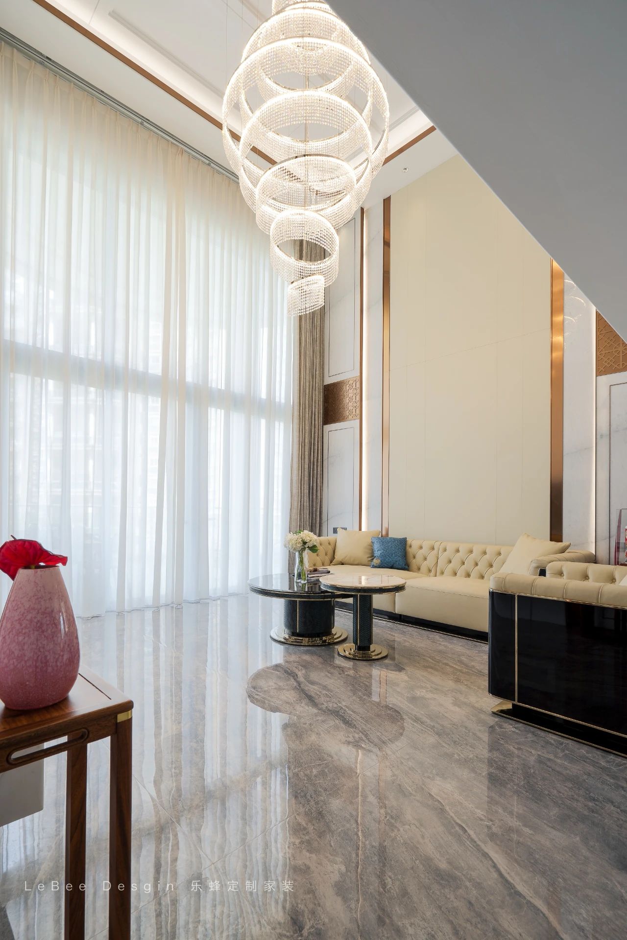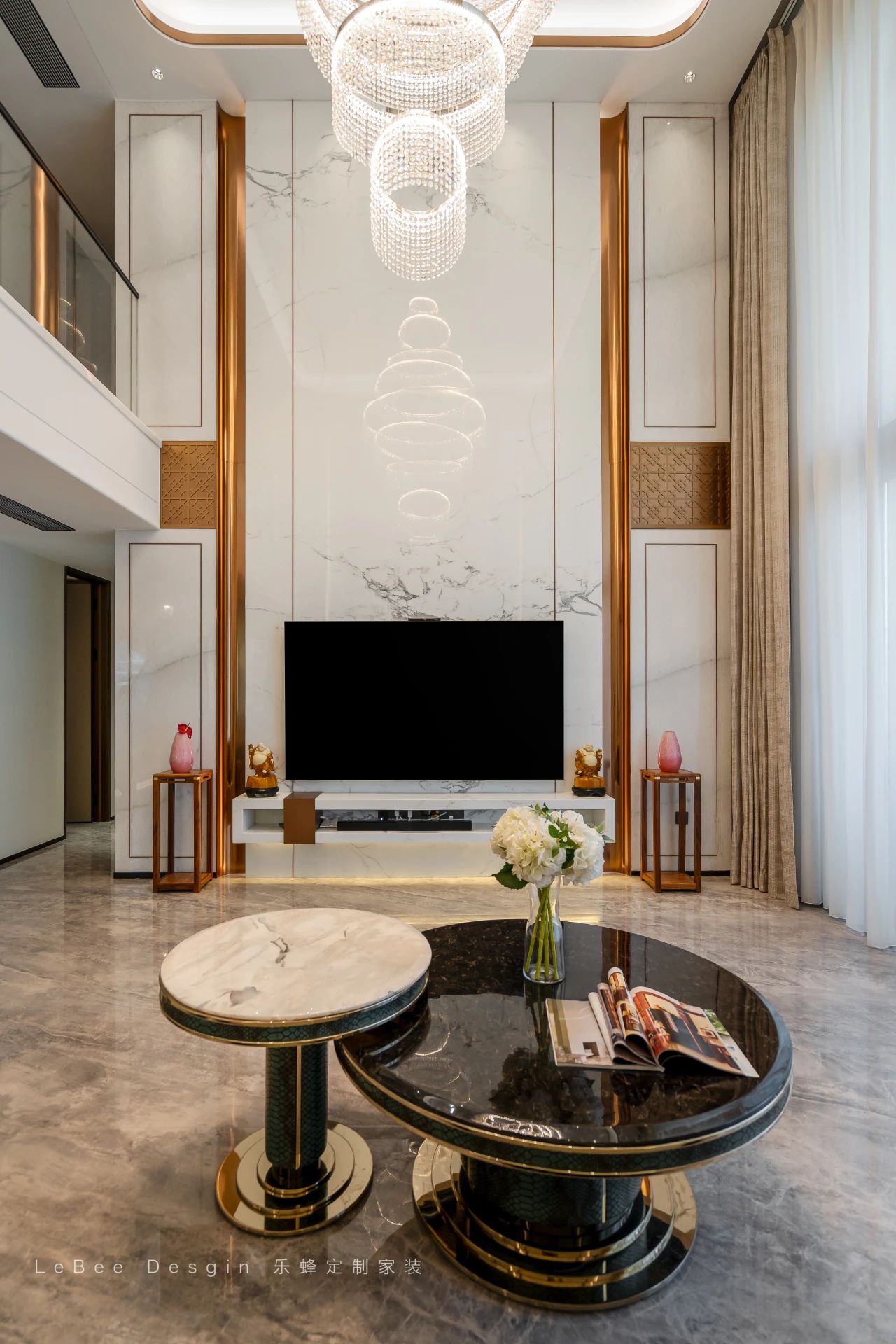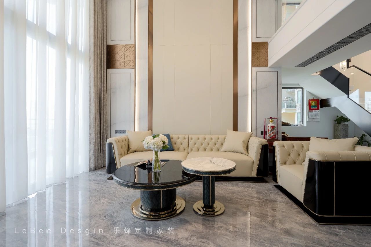 樓梯間通鋪與客餐廳一致的大理石,淺色系的低調(diào)質(zhì)感,搭配連貫地臺(tái)的設(shè)計(jì),有效地延伸了空間視覺(jué),讓每一步都仿佛走在藝術(shù)的長(zhǎng)廊。