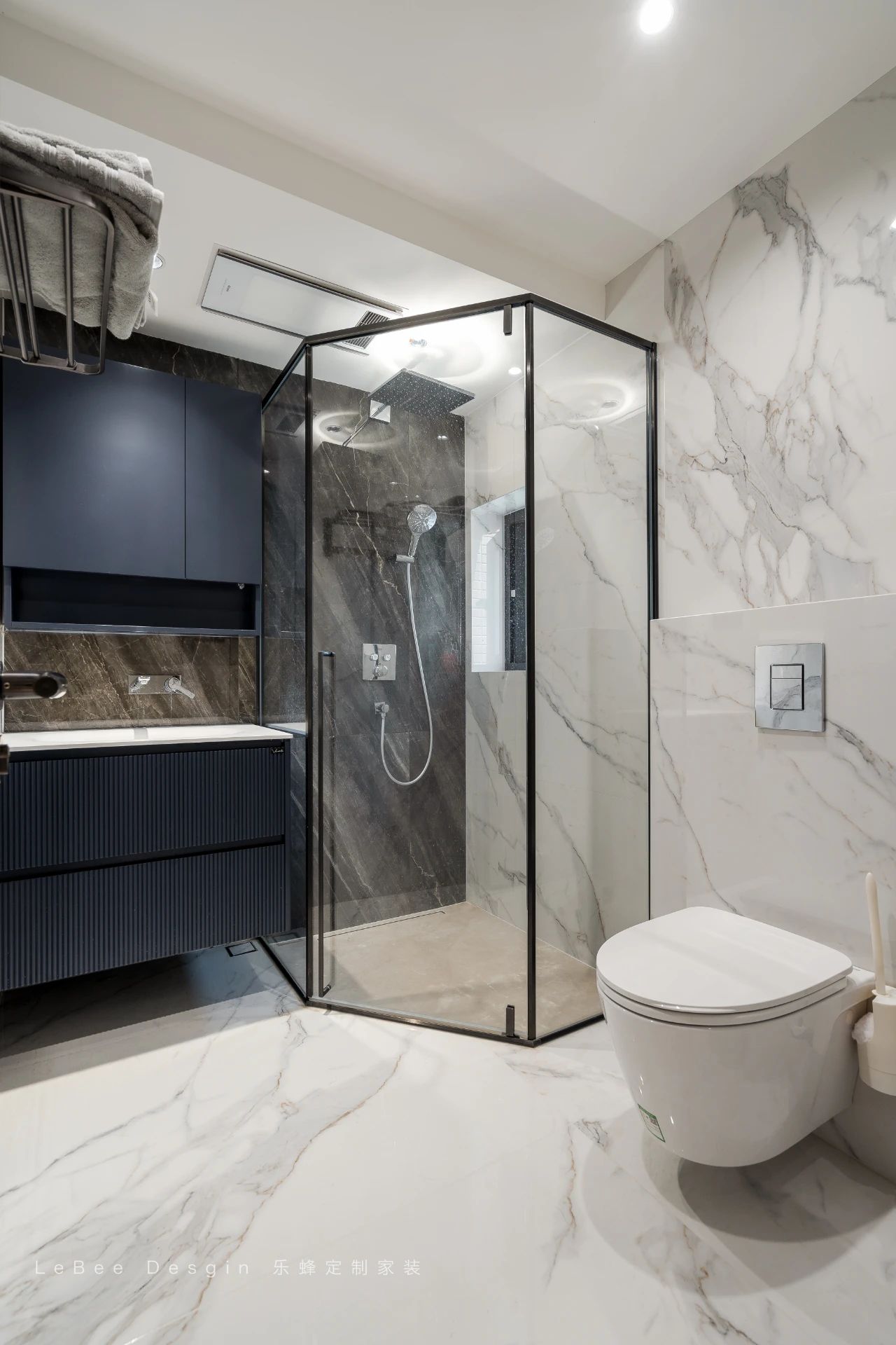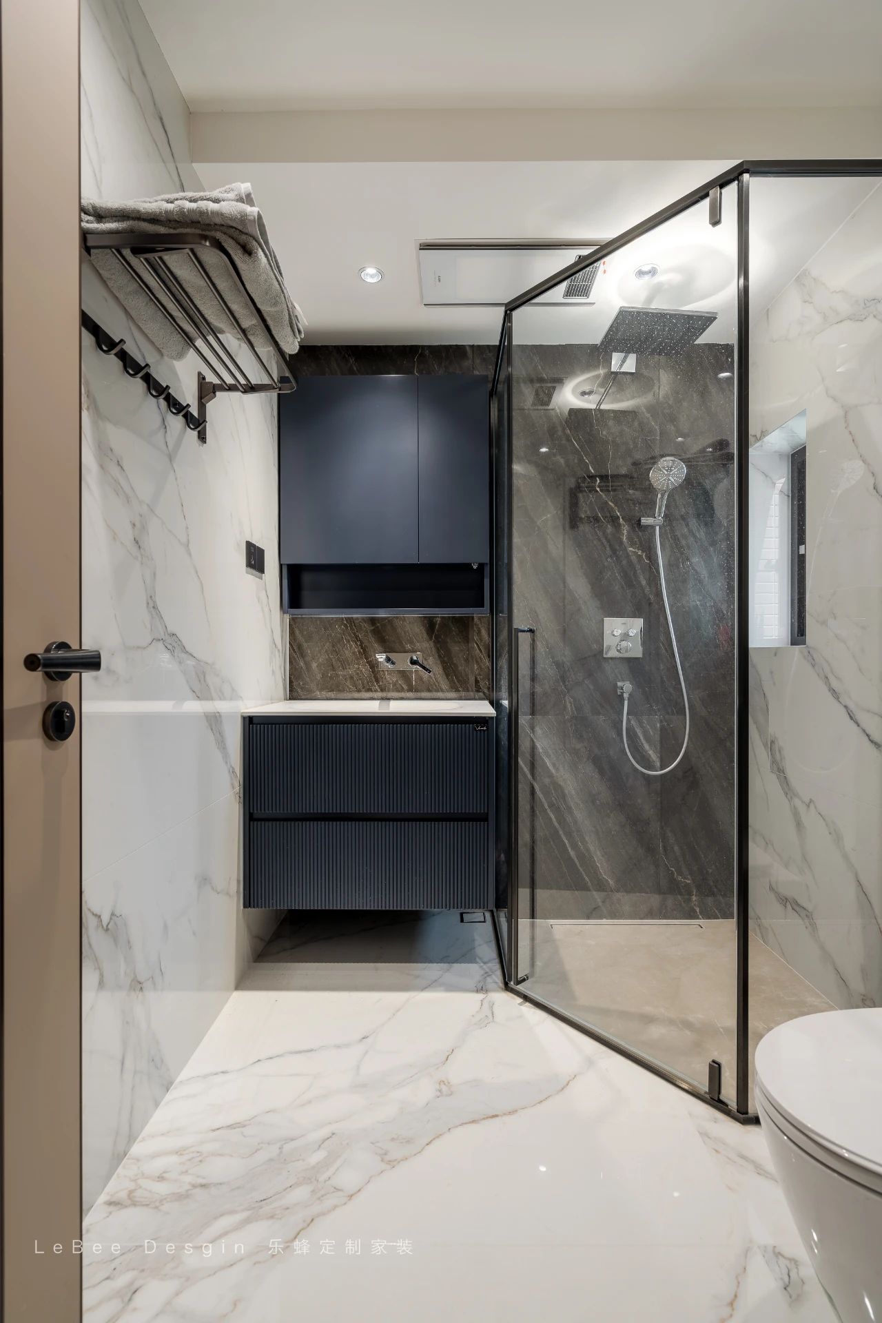 長(zhǎng)輩房以藍(lán)色與灰色為主色調(diào),構(gòu)建出充滿活力且沉穩(wěn)的空間氛圍,使長(zhǎng)輩能感受到寧?kù)o舒適的居住氛圍。
