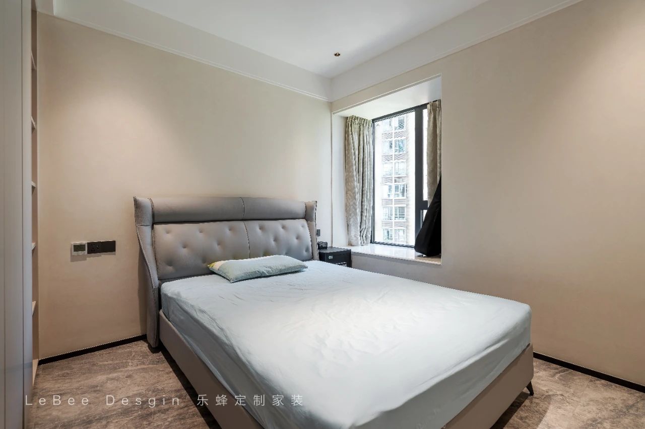 床頭背景墻采用了皮質(zhì)軟包設(shè)計(jì),搭配精致的金屬線條,增添了質(zhì)感。