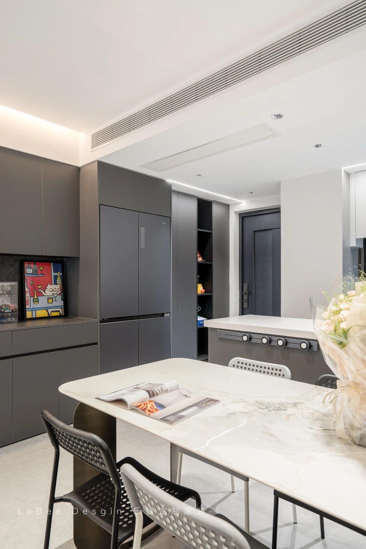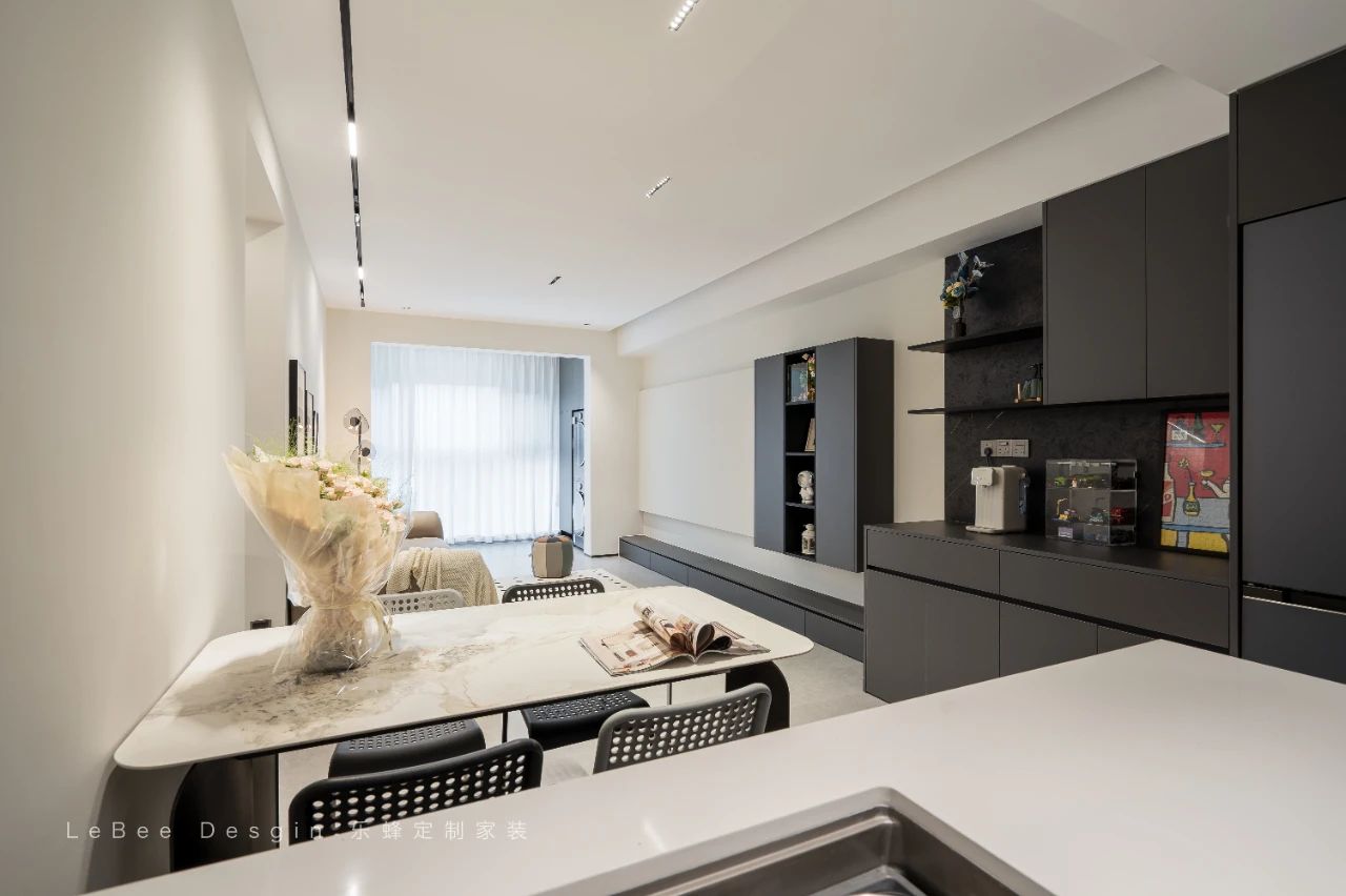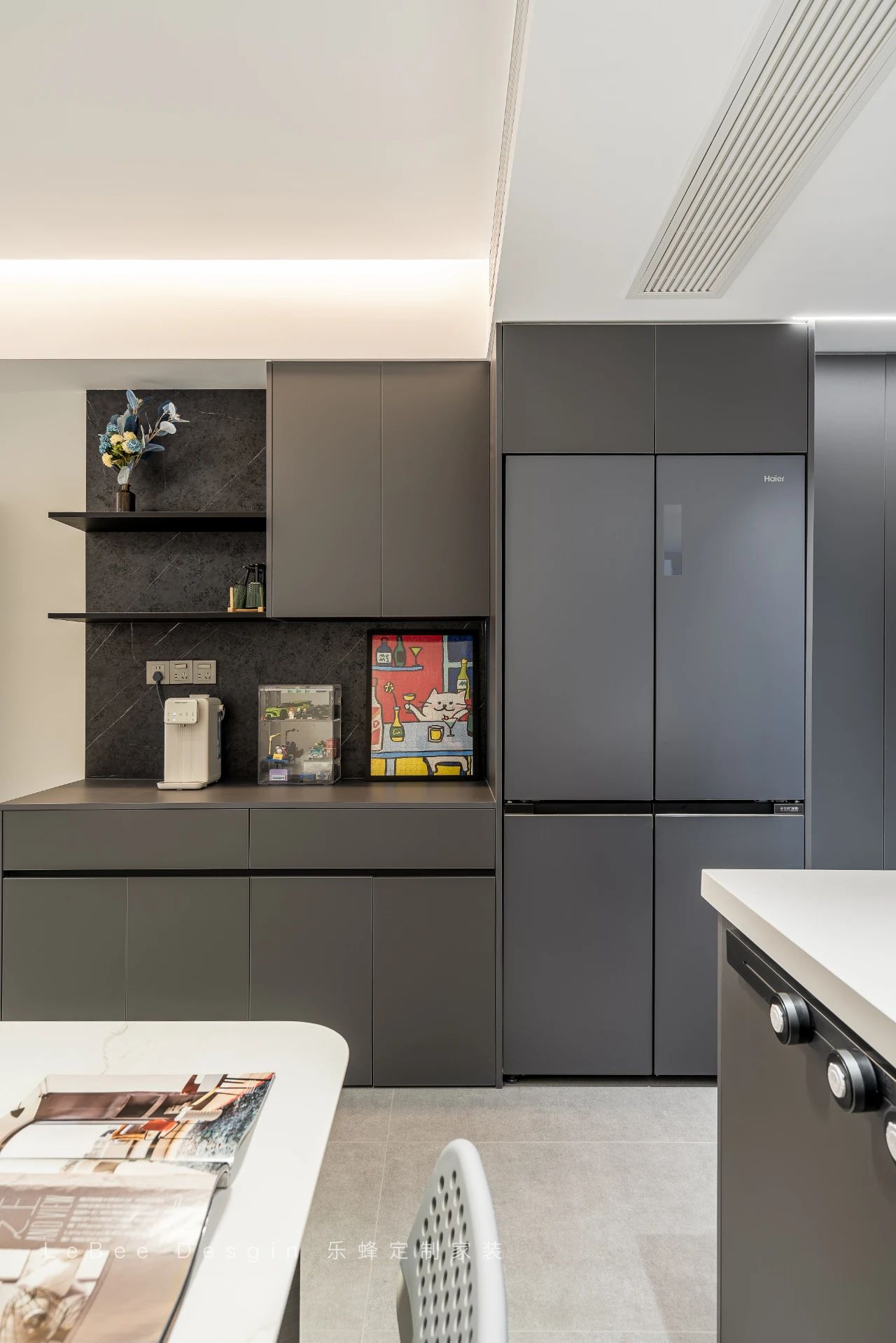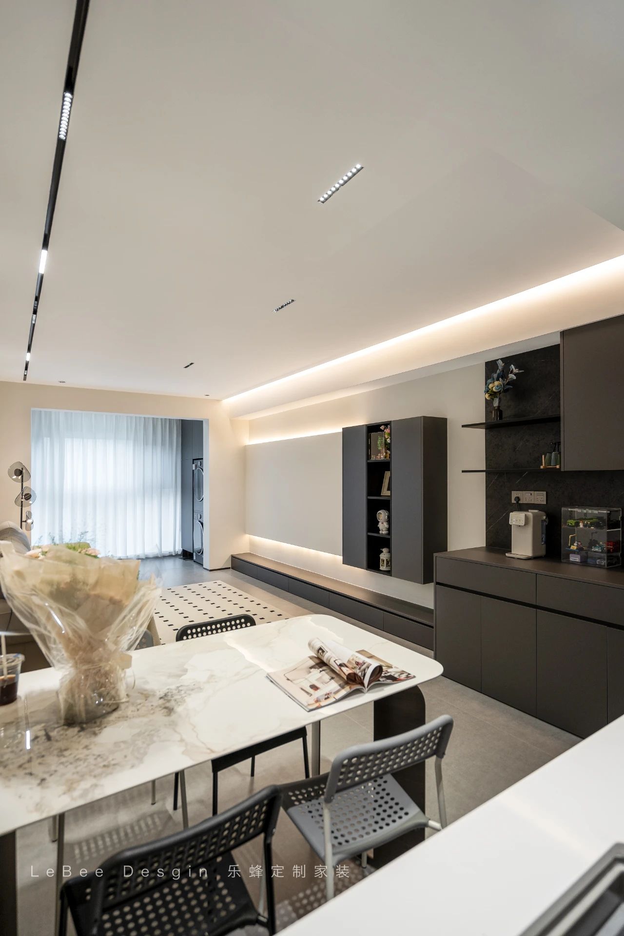 整墻餐邊柜擁有滿滿儲物空間,中空臺面可以做咖啡角操作臺,實(shí)用又好看。