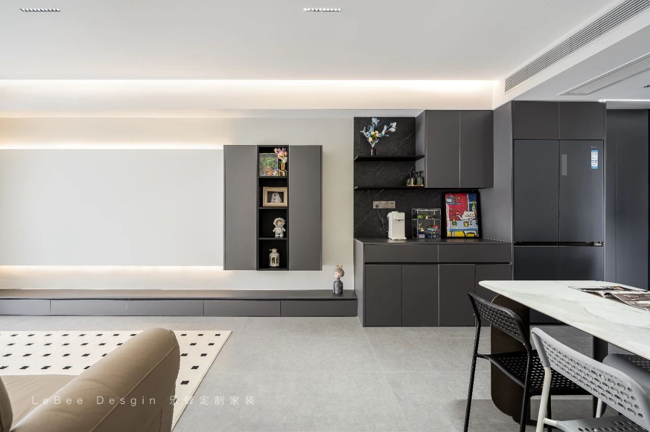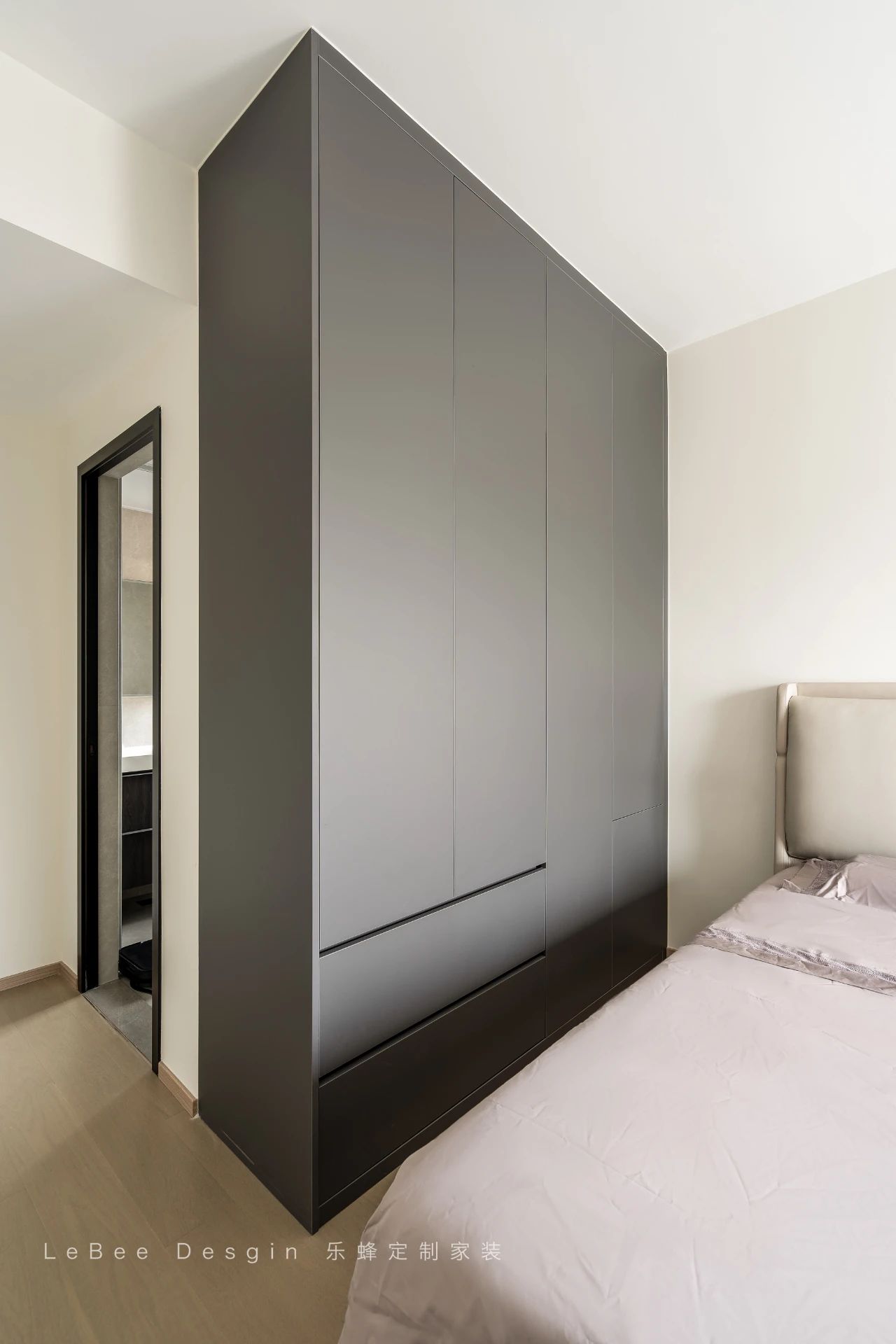 全屋收納也應(yīng)做“減法”,定制柜體加按壓式柜門,視覺干凈大氣,也為極簡家增添了不少質(zhì)感。