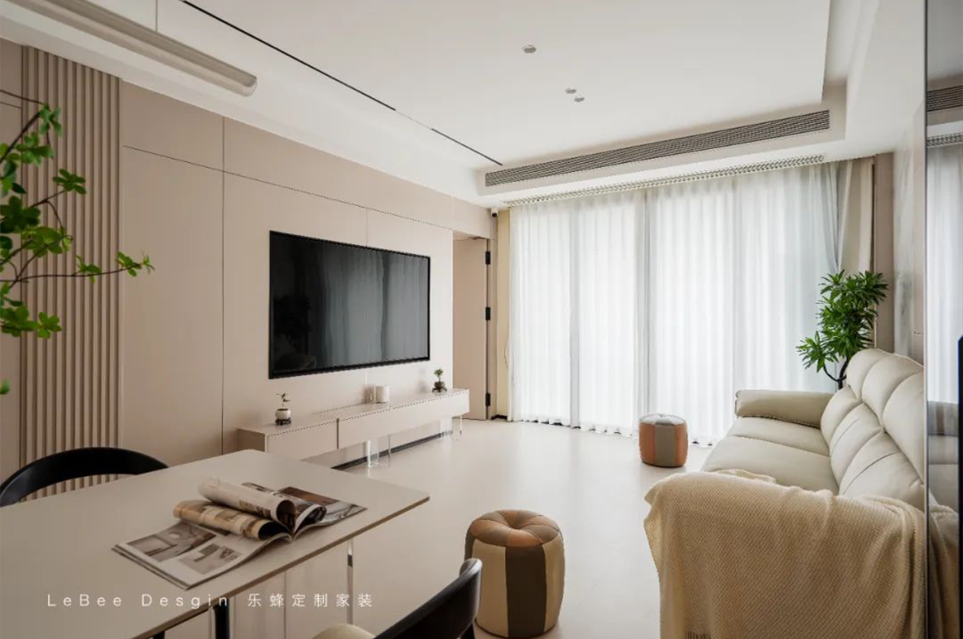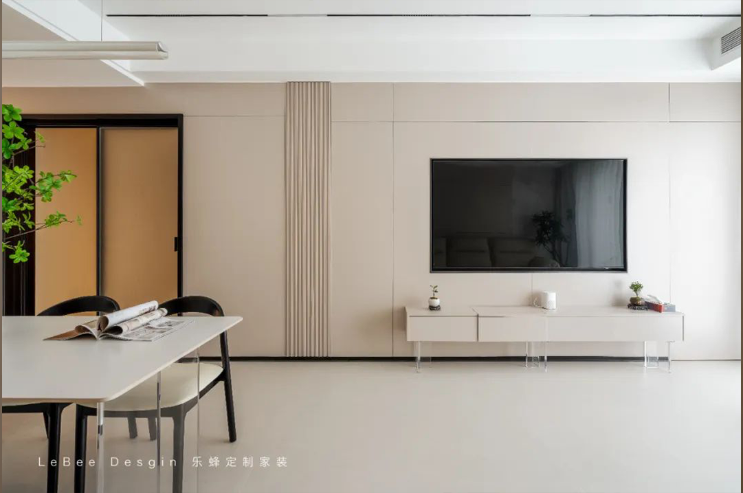 電視墻與沙發墻的“呼吸感”設計:通過懸浮、留白與線性光影,避免大面積墻體壓抑感。