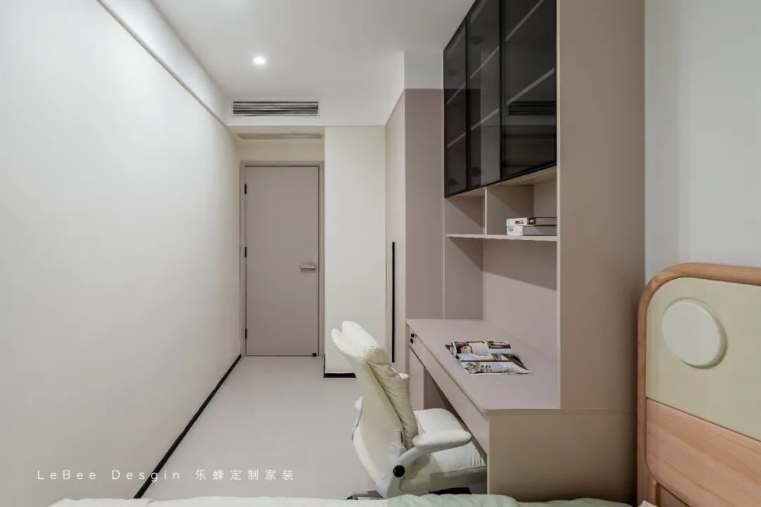 兒童房榻榻米+書桌組合:滿足客房、書房、收納三重功能,適應未來需求變化。