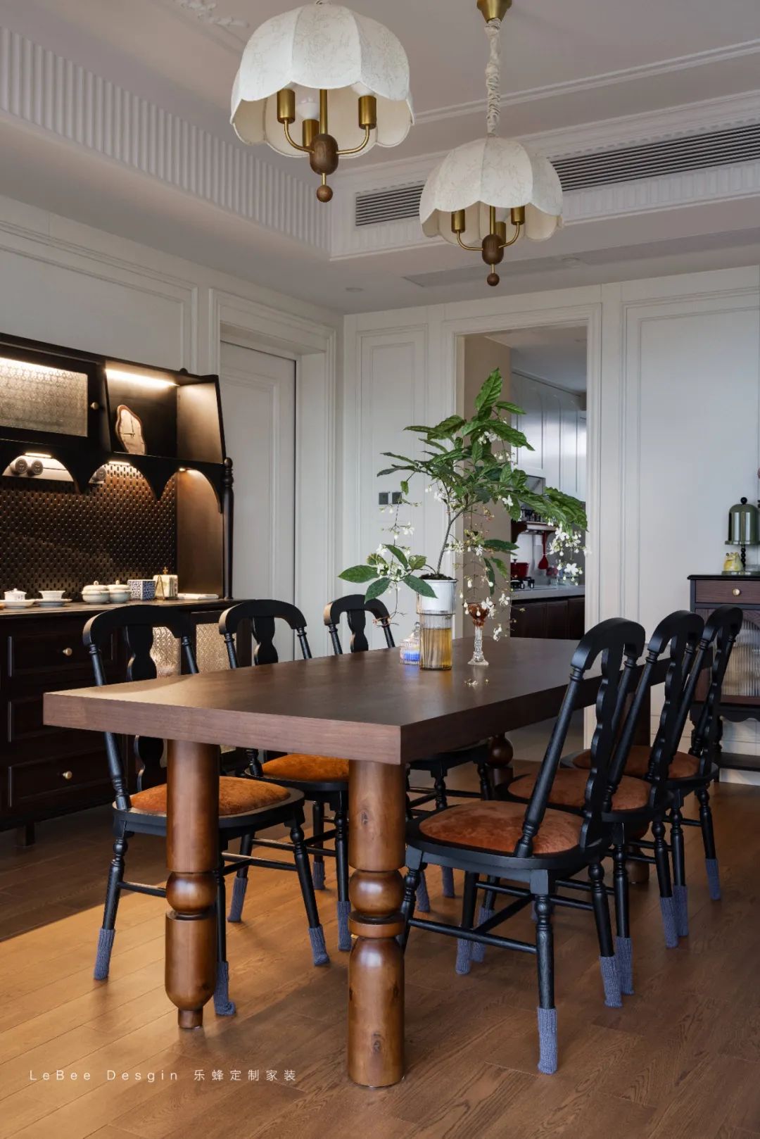 設計亮點:洄游動線:餐廳開放式布局,串聯客廳、茶室與廚房,形成自由環形動線,家人互動零距離。