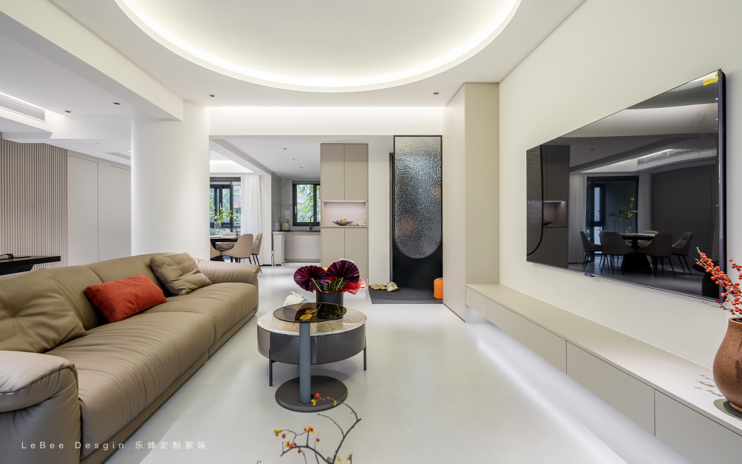開闊與舒適的完美融合,客廳采用弧形燈,營造溫馨又有層次感的氛圍。