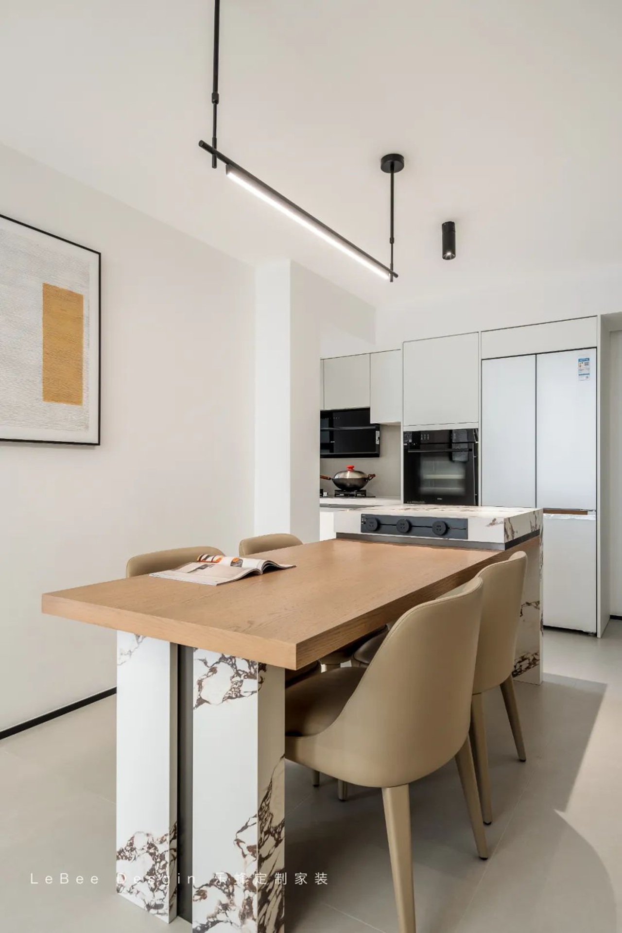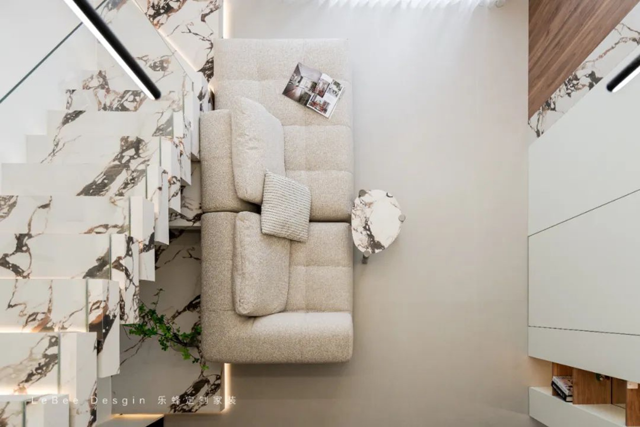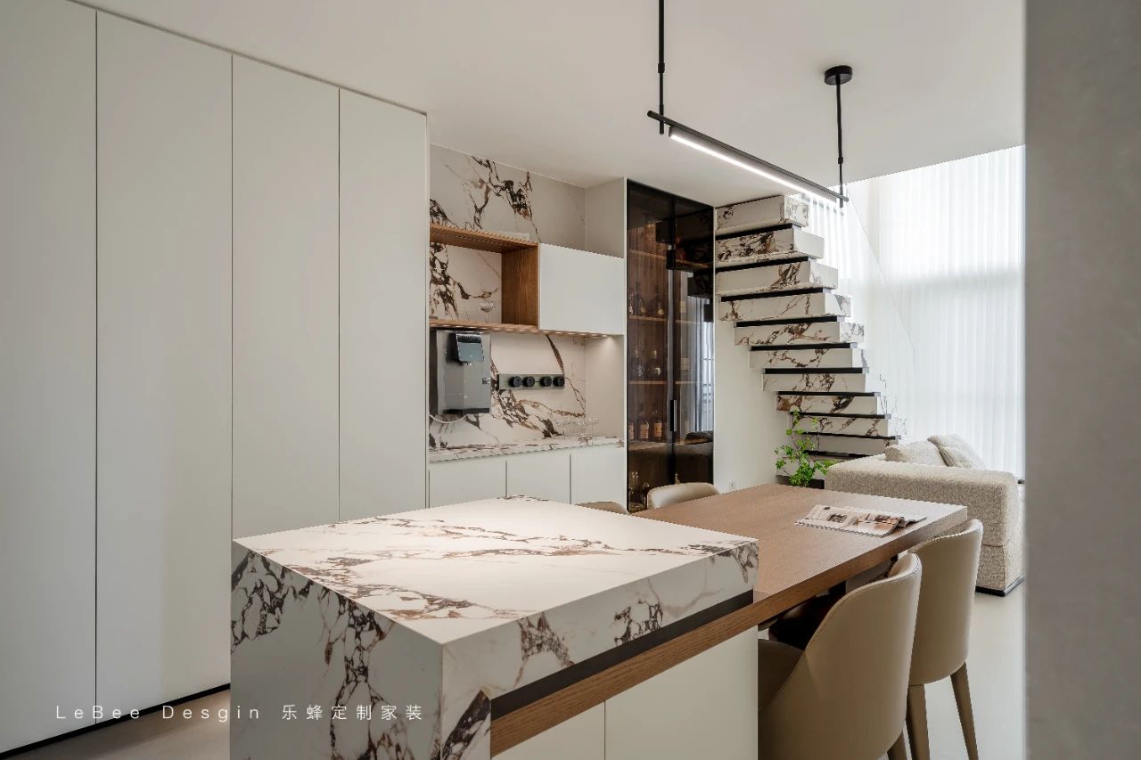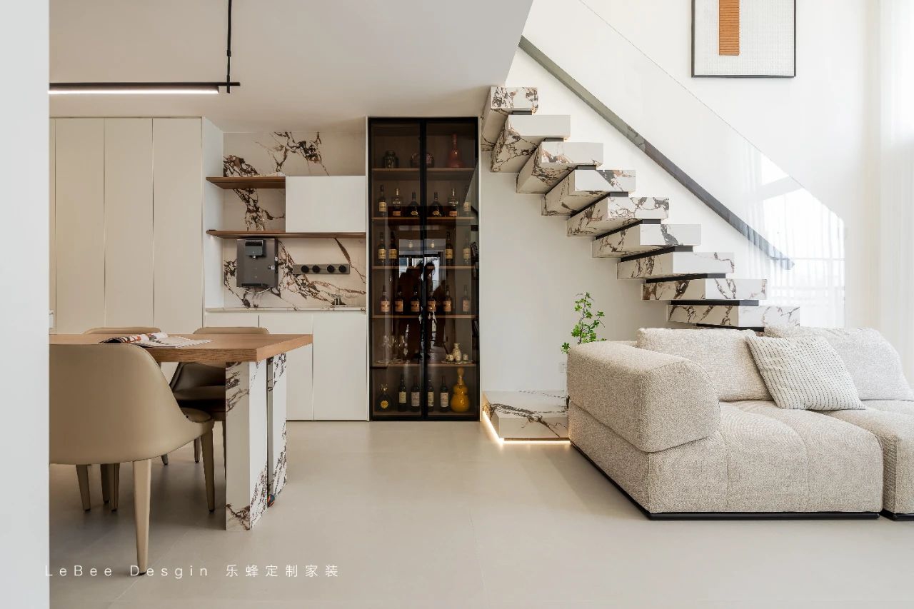 清晨陽光穿透落地窗灑在亞麻窗簾上的光影、懸浮樓梯踏步亮起的暖黃燈帶、島臺咖啡機啟動時的低鳴,共同構建出快節奏都市中獨有的慢生活儀式感。